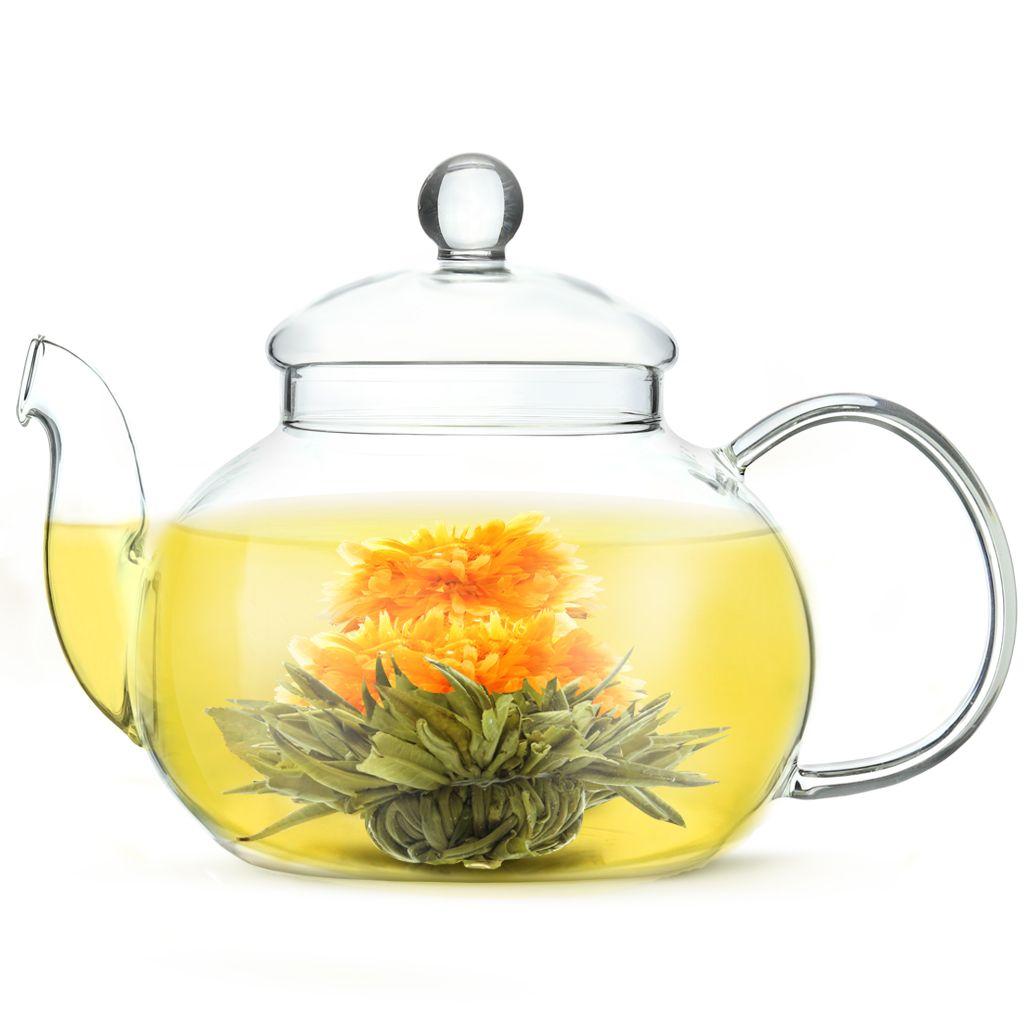Зелёный китайский связанный чай, который в процессе заваривания дарит эстетическ...