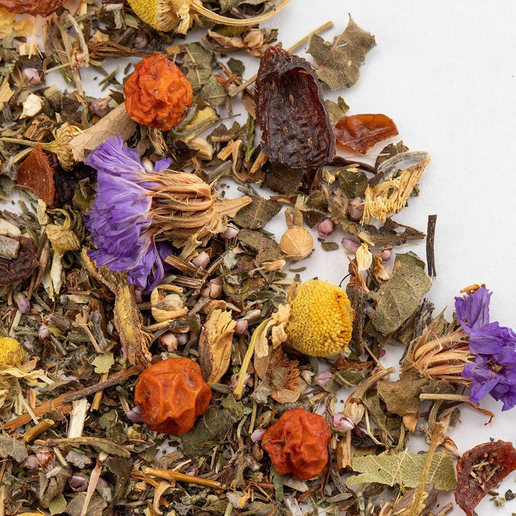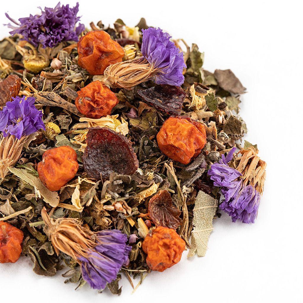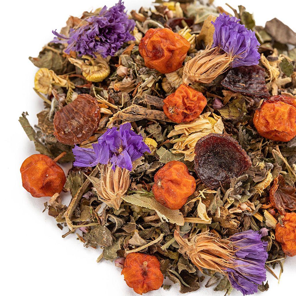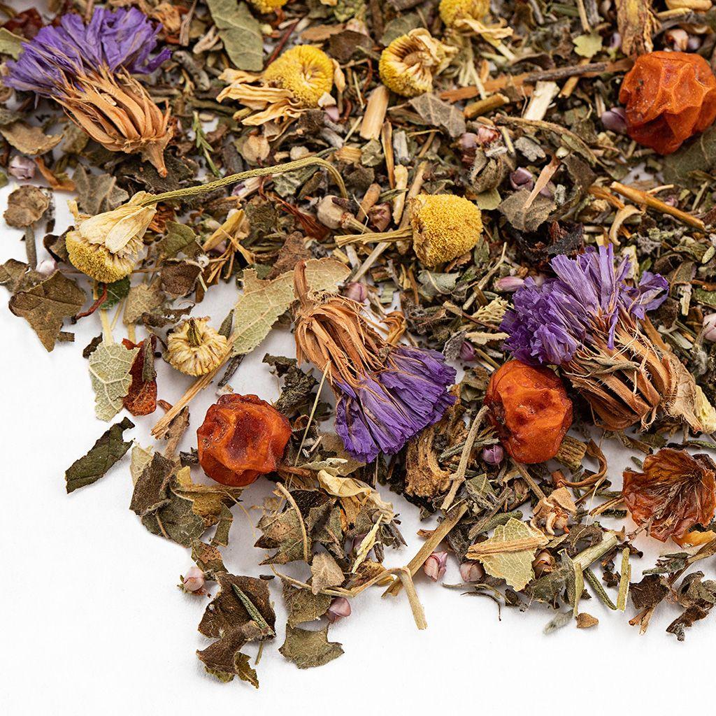 В состав этого напитка входят: лист мяты, зизифора, цветки бессмертника, таволга...