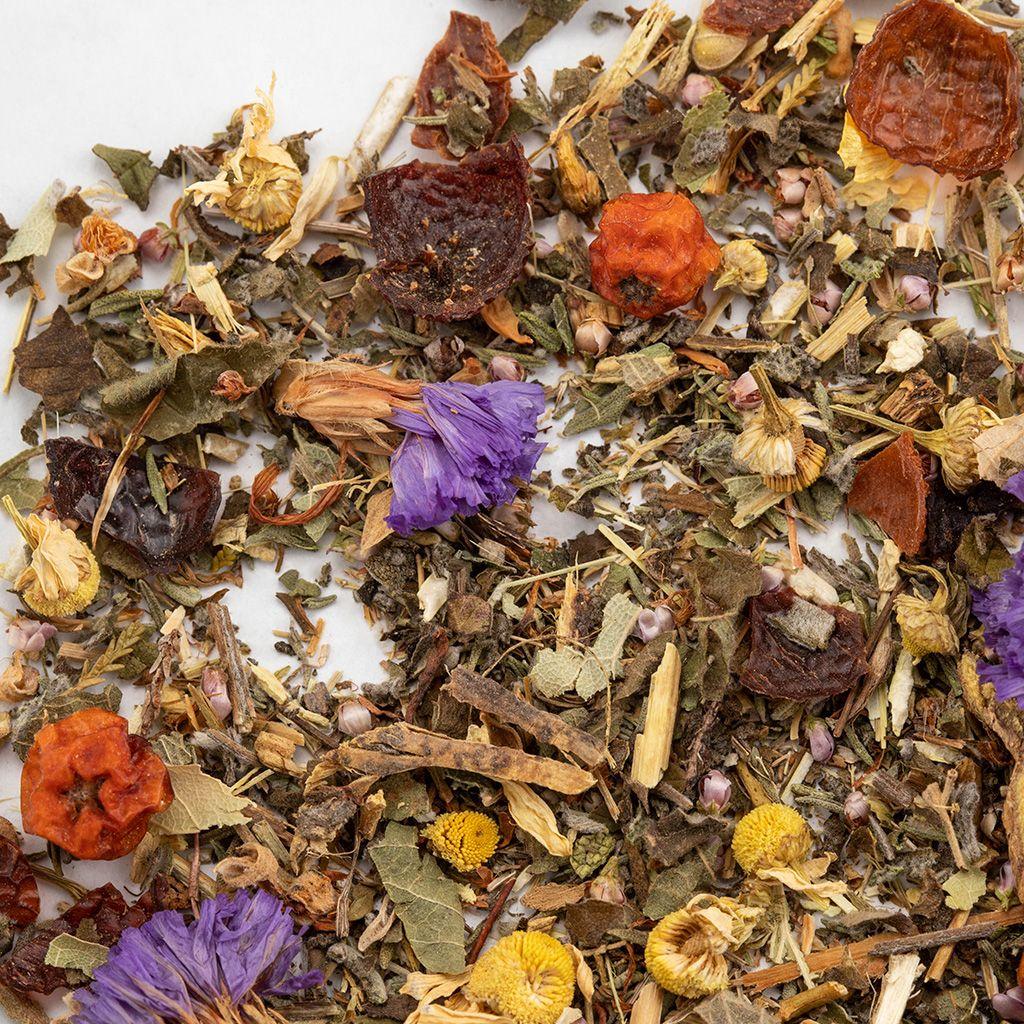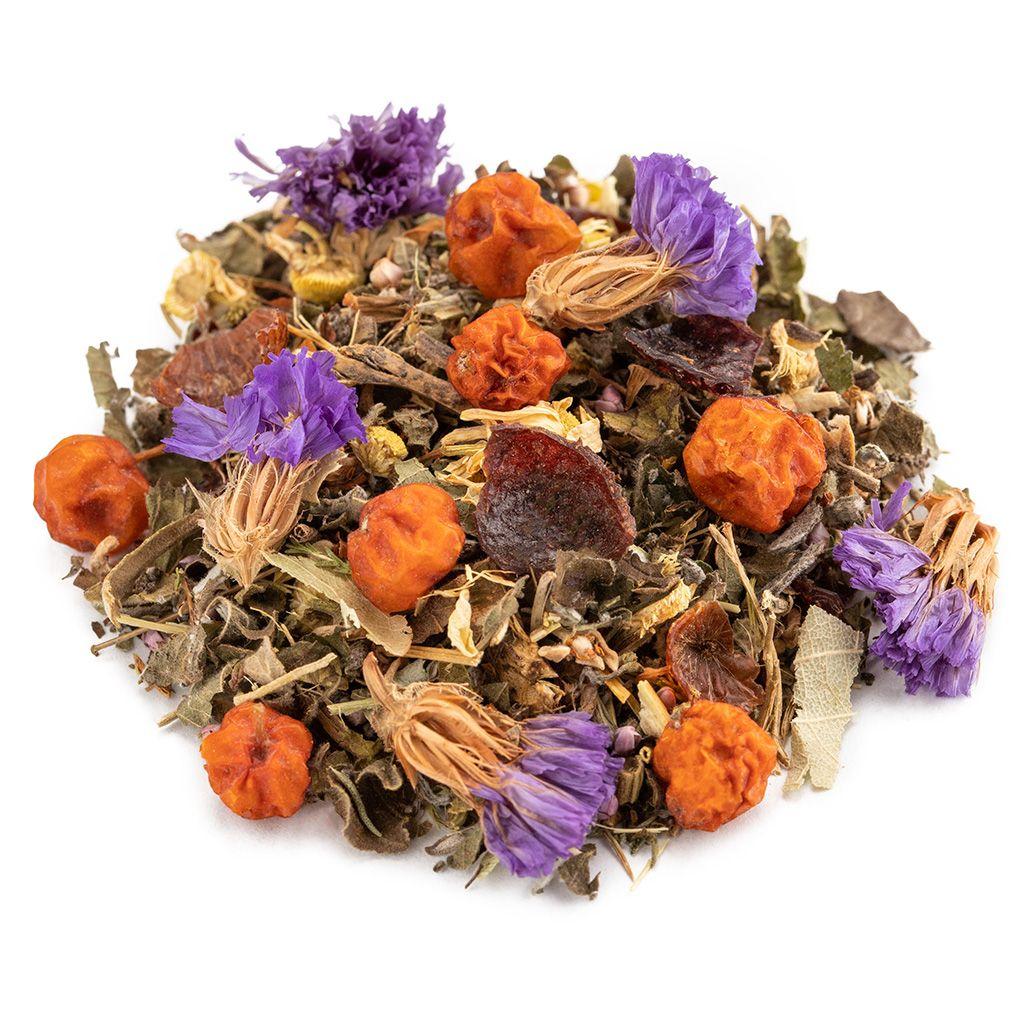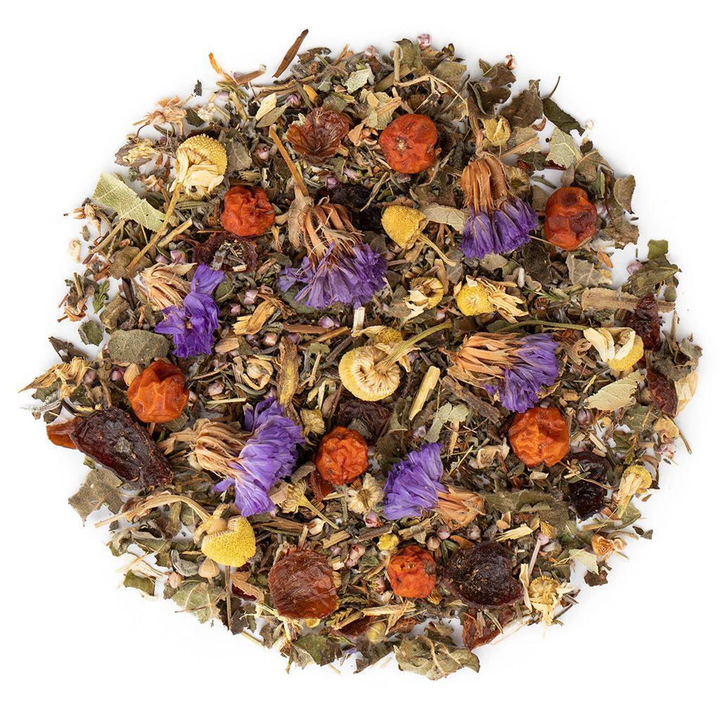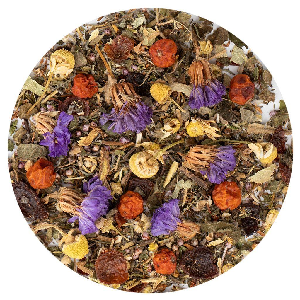 В состав этого напитка входят: лист мяты, зизифора, цветки бессмертника, таволга...