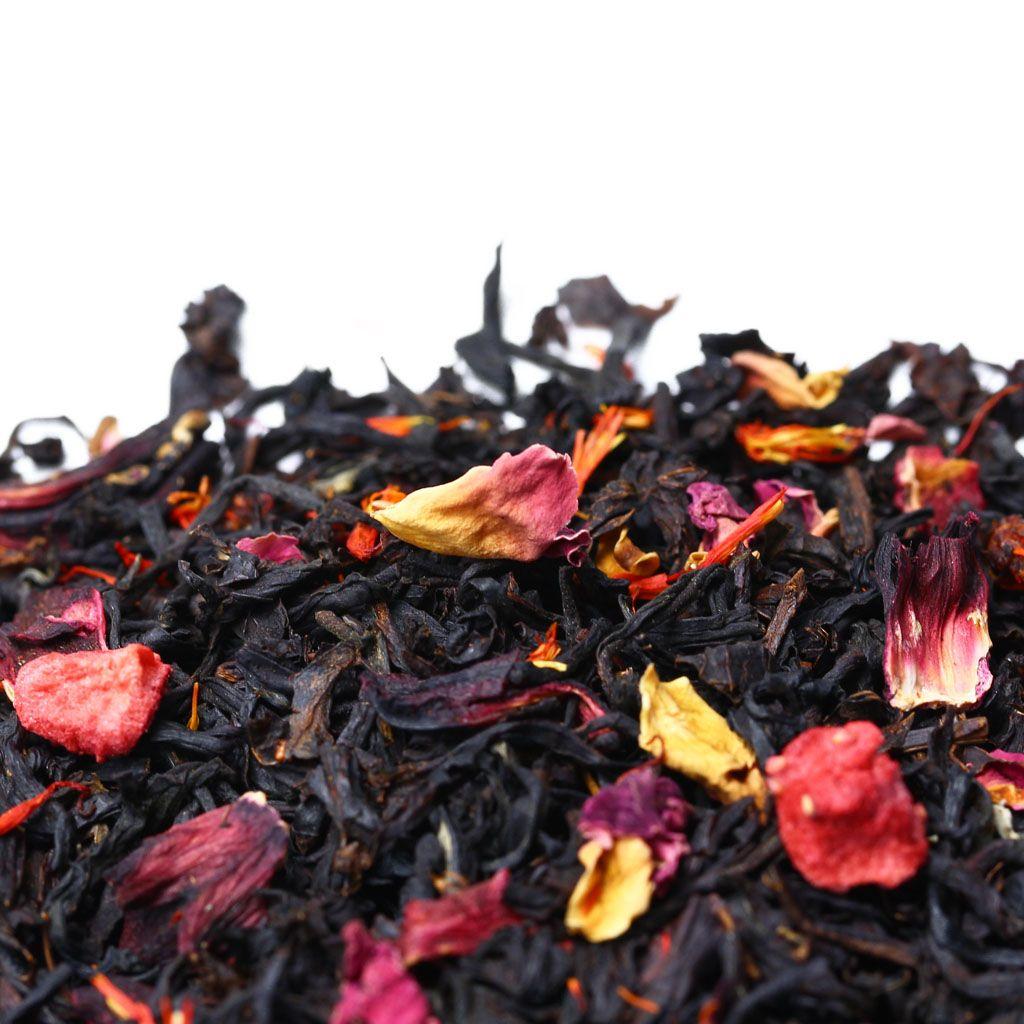 Чёрный индийский чай с цельными ягодами клубники и ежевики, бутонами роз и кусоч...