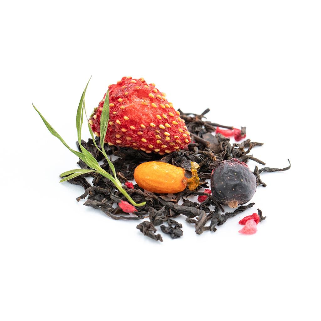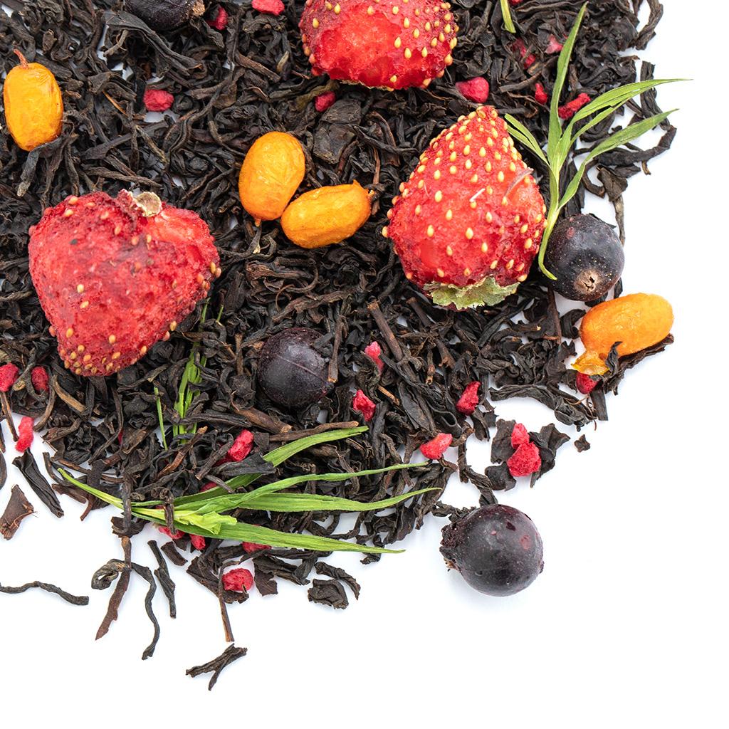 Черный цейлонский чай в дополнении плодов облепихи, листа смородины и лепестков ...