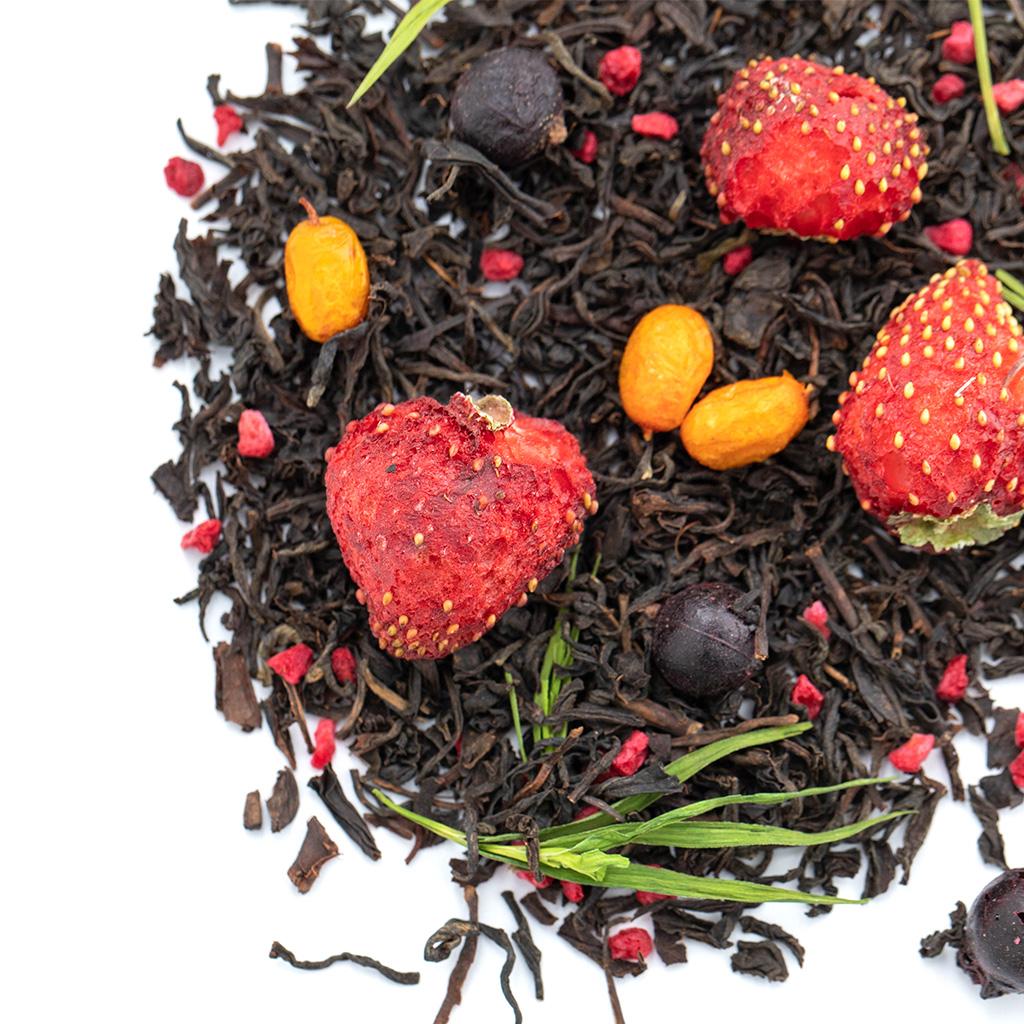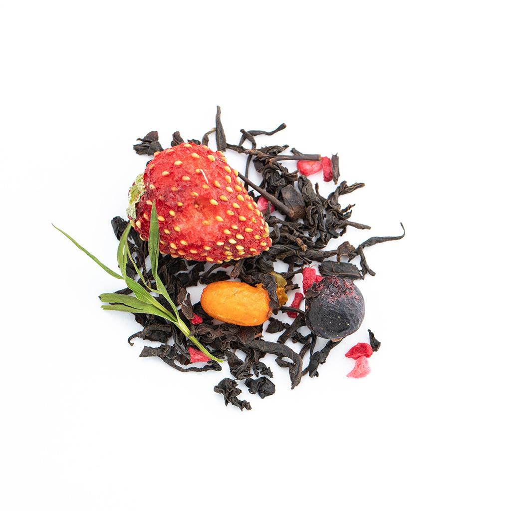 Черный индийский чай Ассам дополнен ягодами красной смородины, лепестками сафлор...