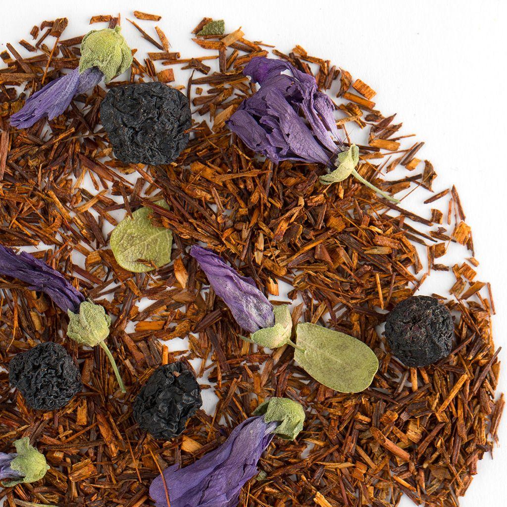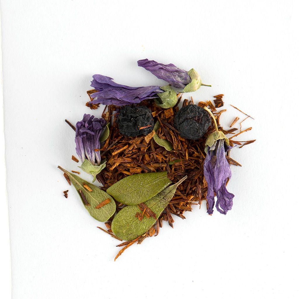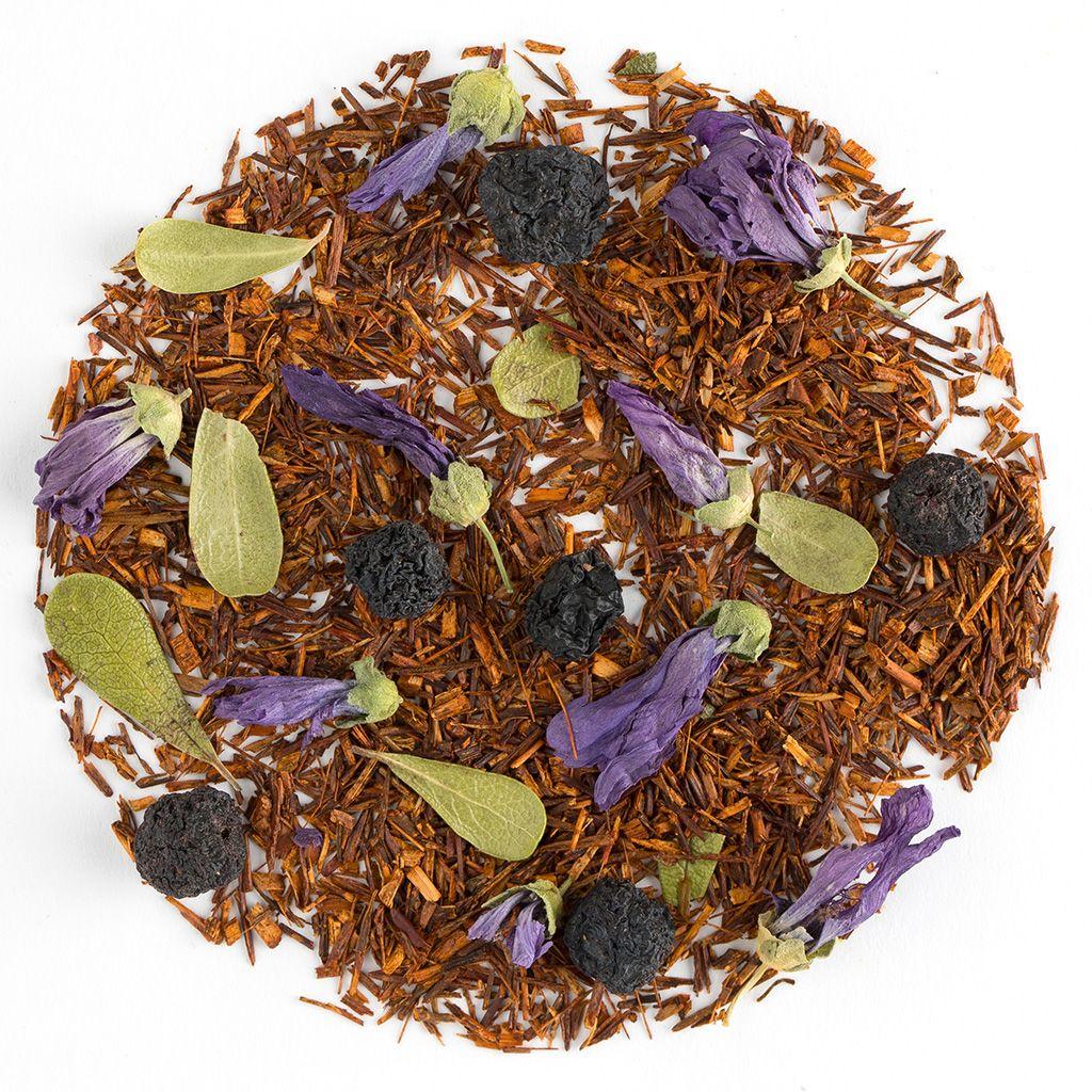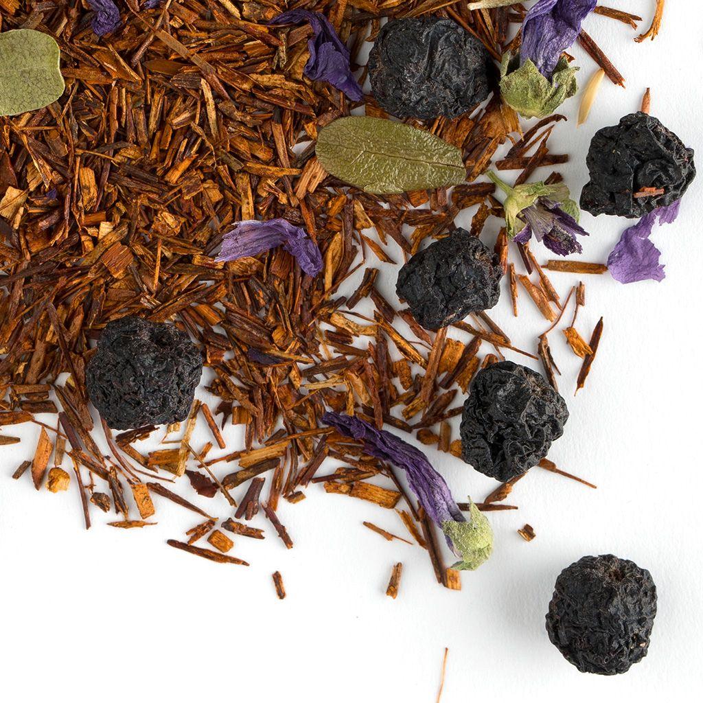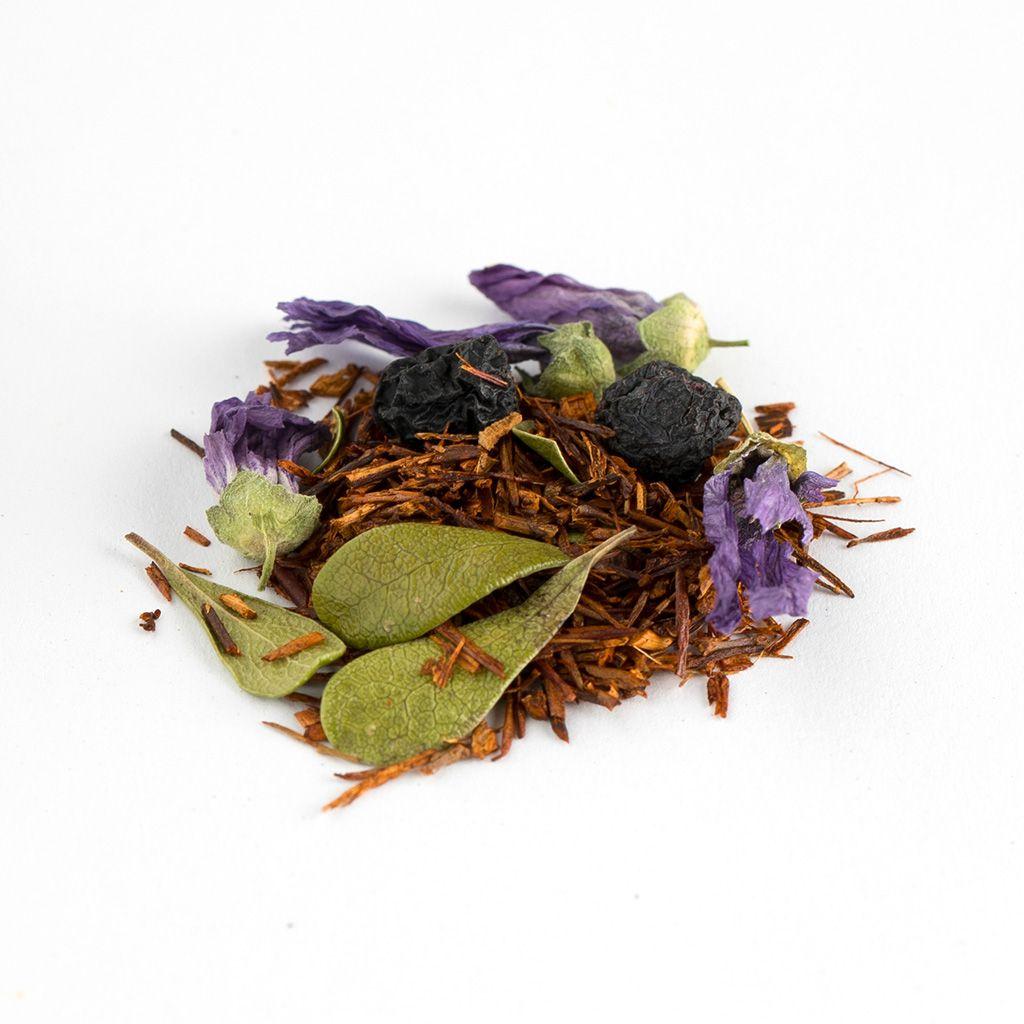 чистый ройбуш — это напиток без противопоказаний: он подойдет детям, беременным, людям с хроническими заболеваниями. Его тонизирующее действие настолько мягкое, что не перевозбуждает нервную систему. Не содержит кофеин, полезен для сердечно-сосудистой системы, содержит антиоксиданты. Состав: Ройбуш, арония, мальва, лист брусники, аромат «Черничный мусс».