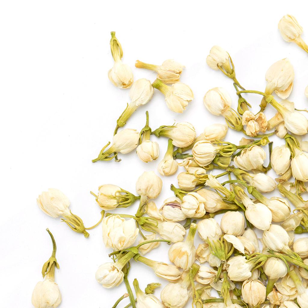 В составе зелёного чая, жасмин подчёркивает его вкус, дополняя его нежным цветочным ароматом.