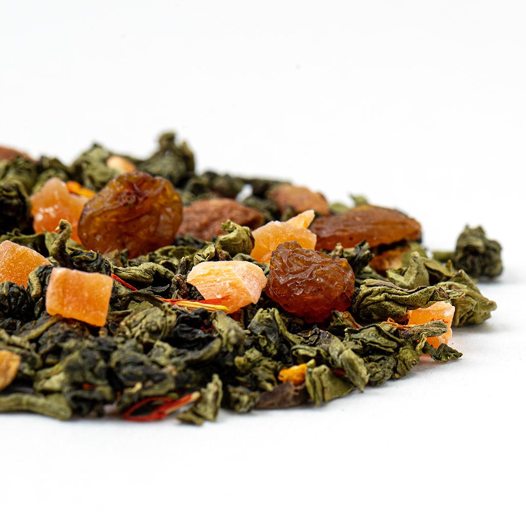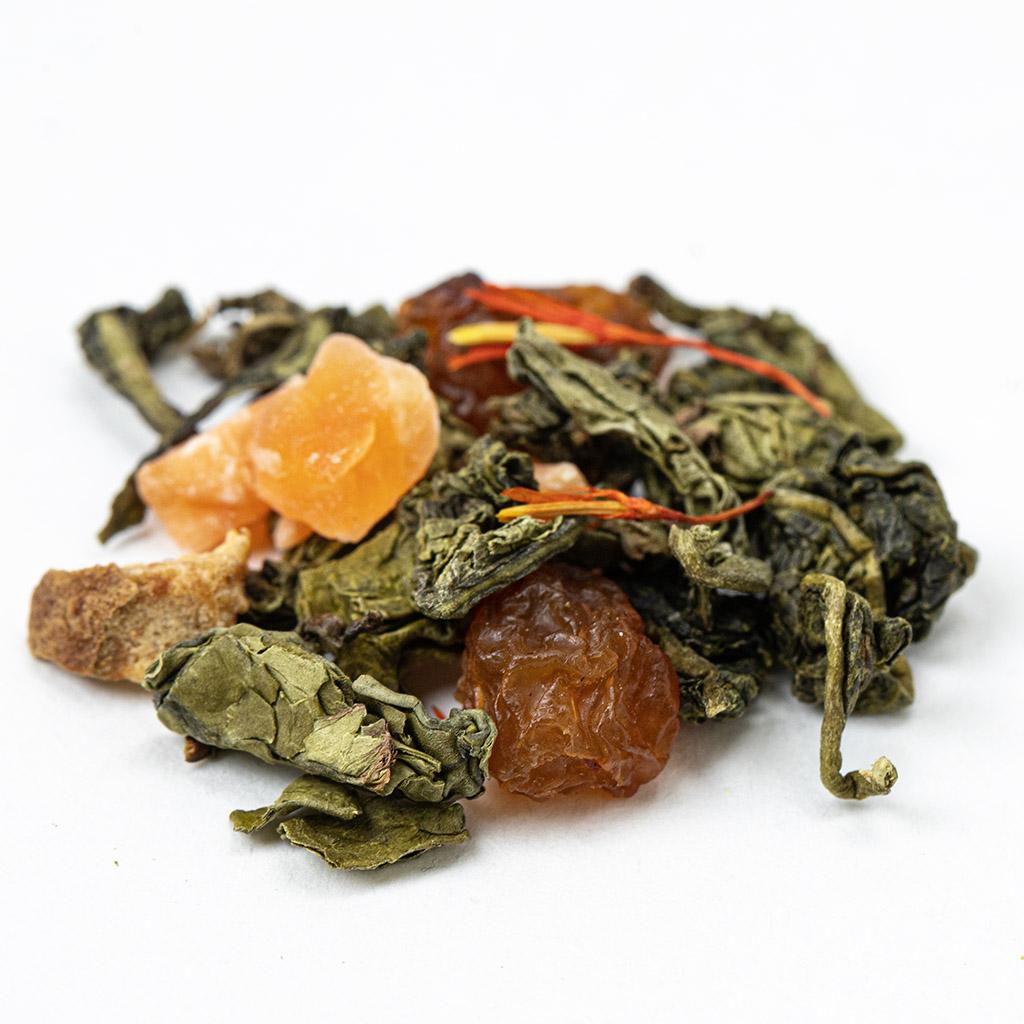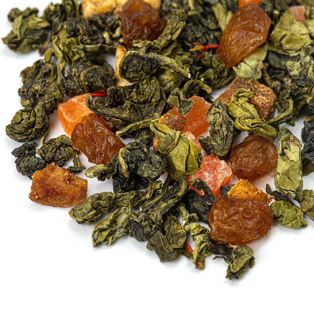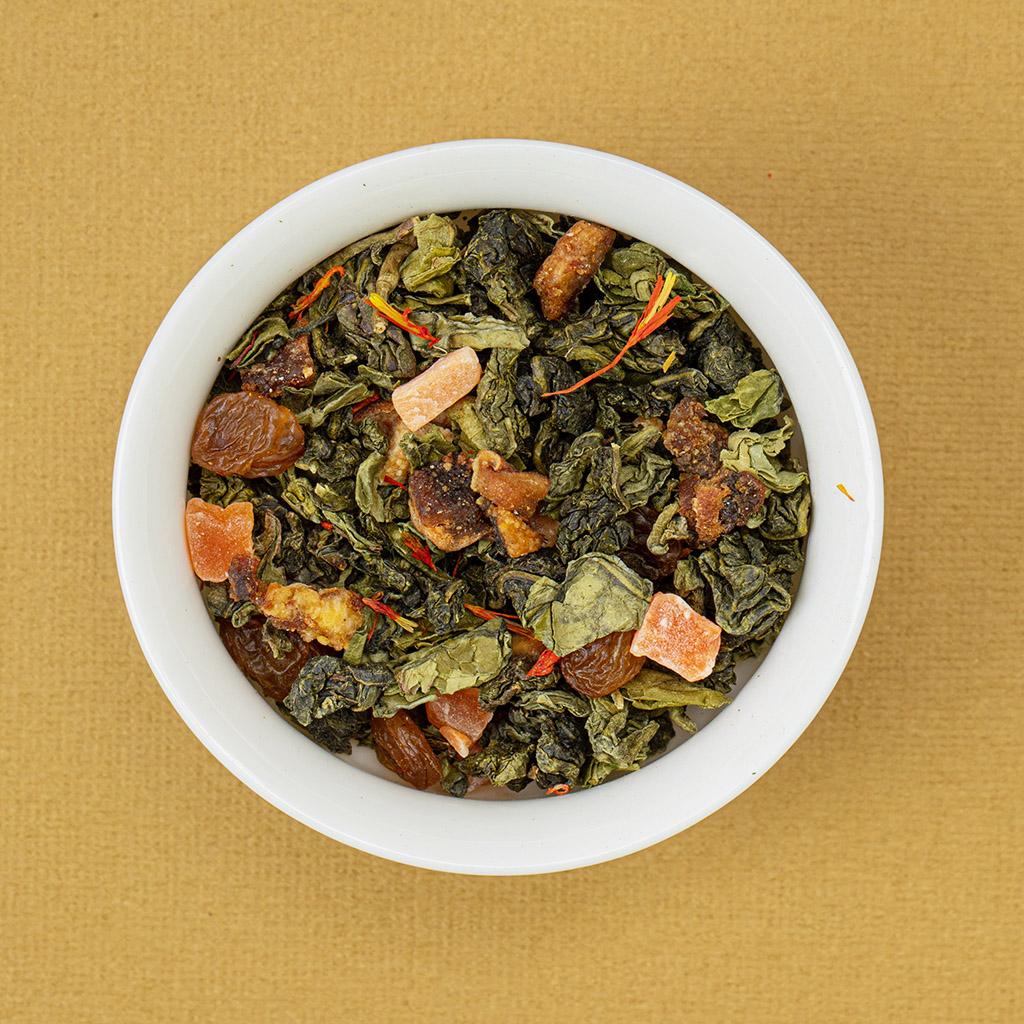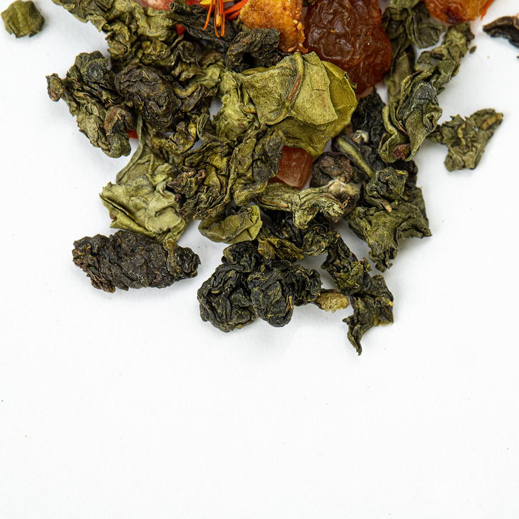 Основа данного чая — китайский улун, известный своим бархатистым и нежным характером, словно утренний туман, обволакивающий чайные листья на склонах гор.