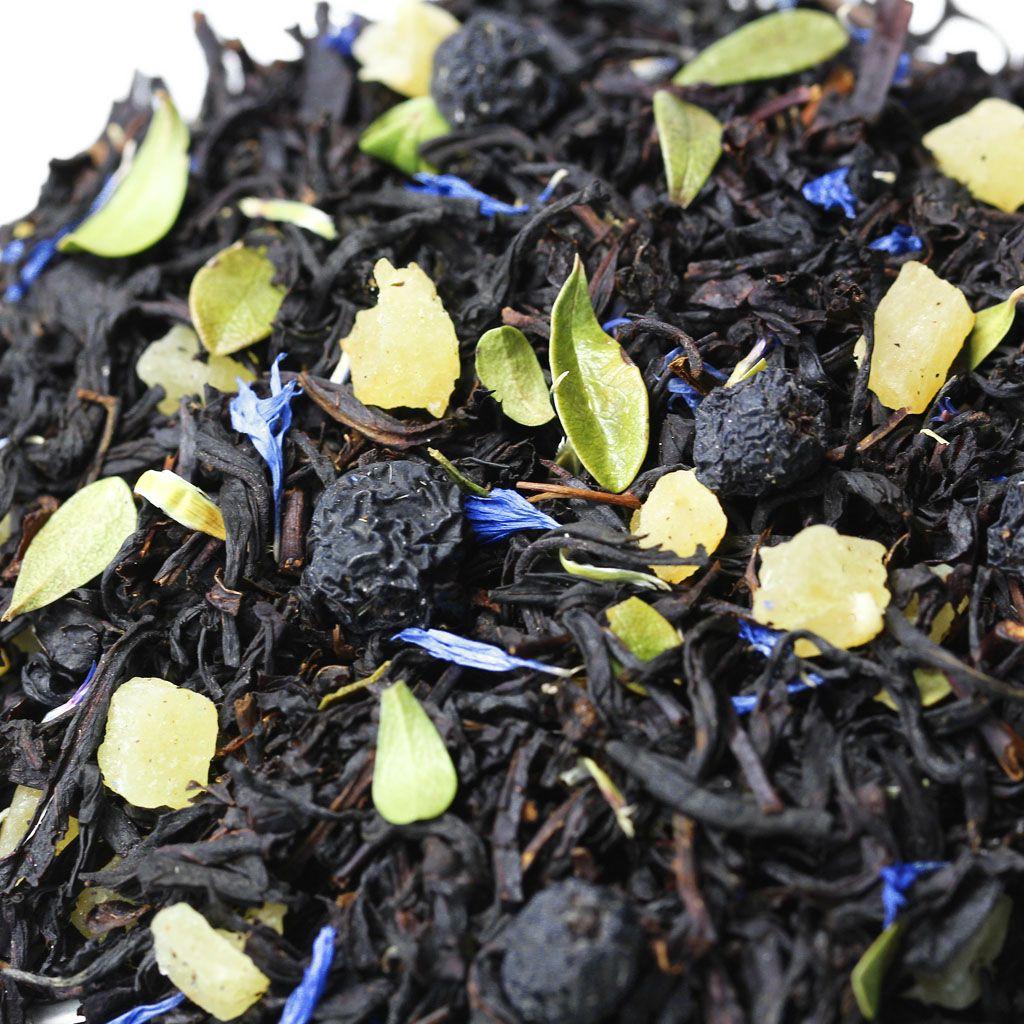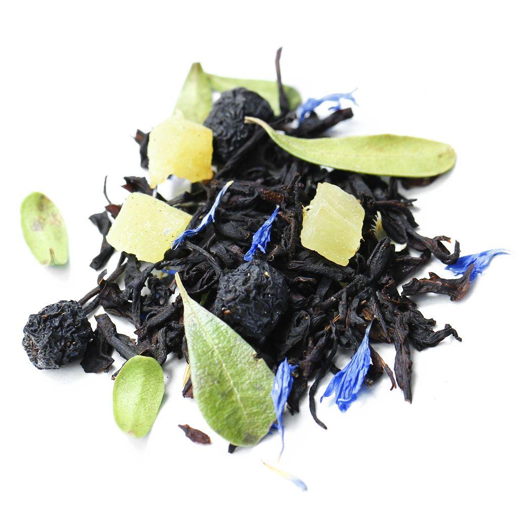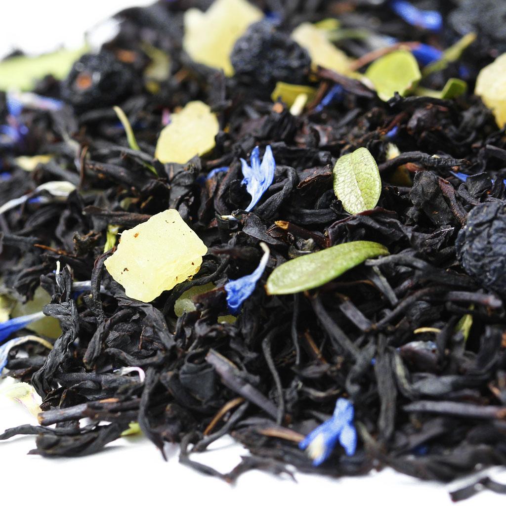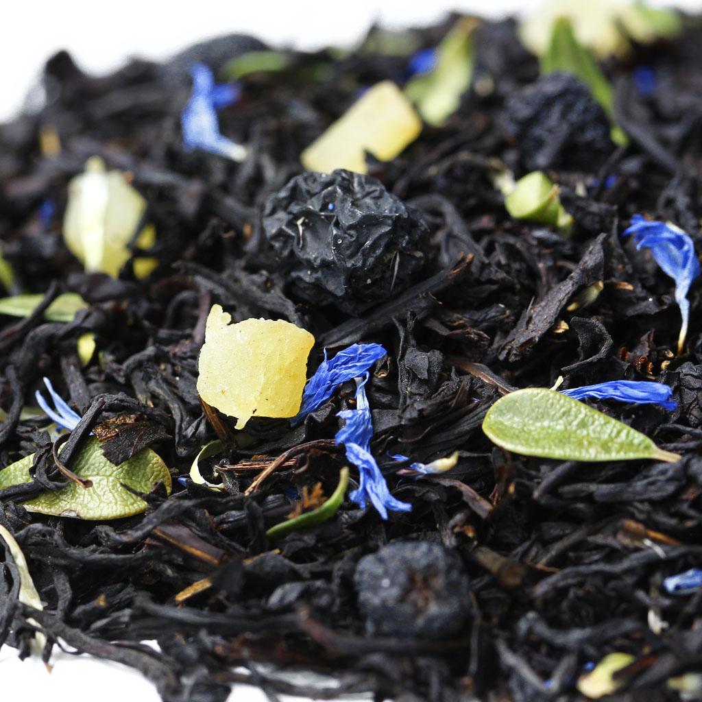 Чай черный индийский, кусочки ананаса, ягоды черники, лепестки василька, листья брусники, аромат лесных ягод.