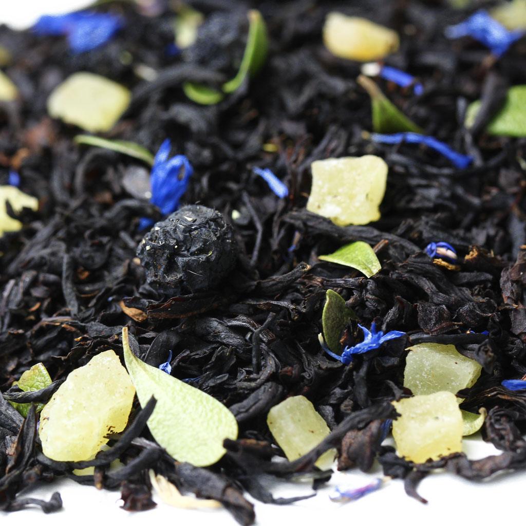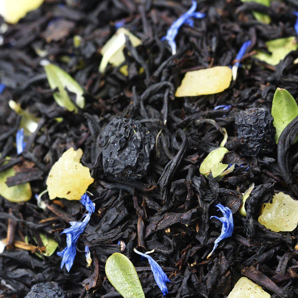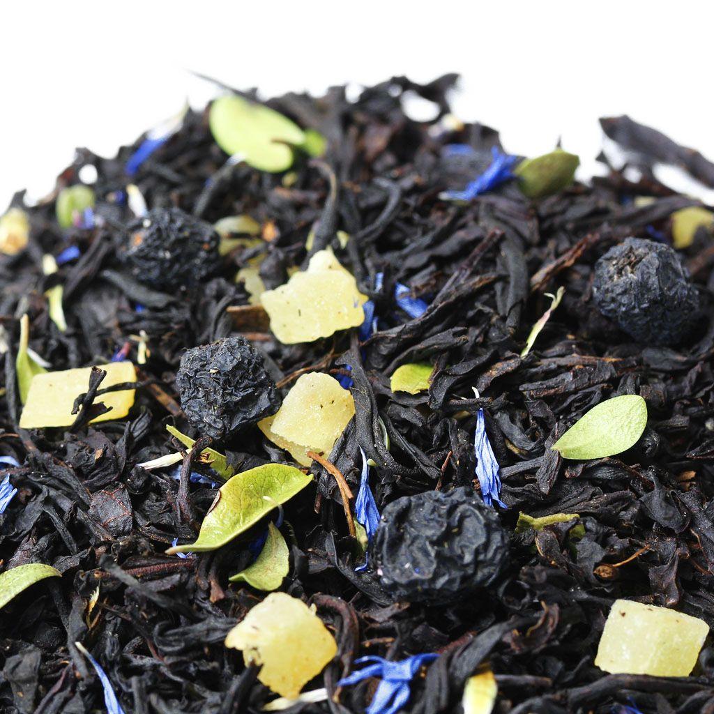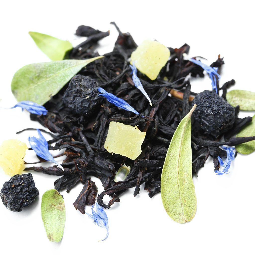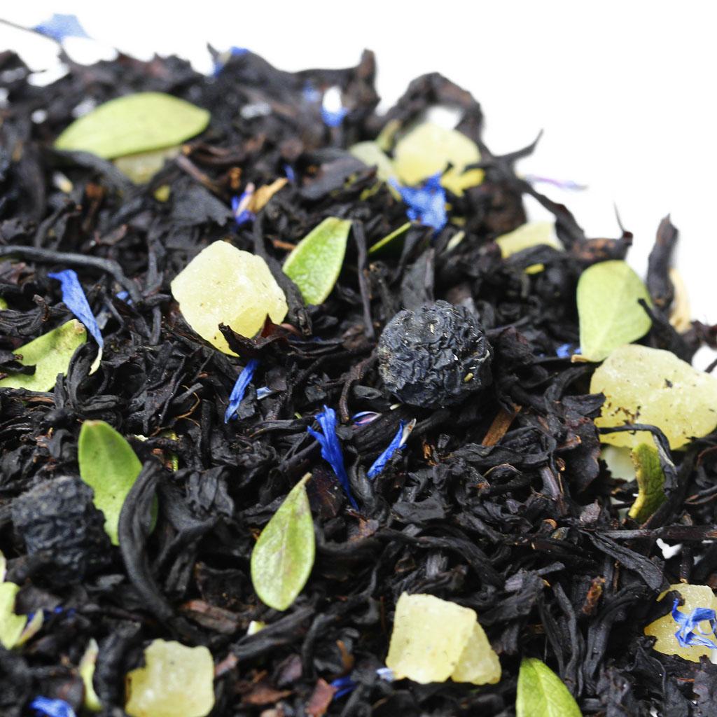Чай черный индийский, кусочки ананаса, ягоды черники, лепестки василька, листья брусники, аромат лесных ягод.