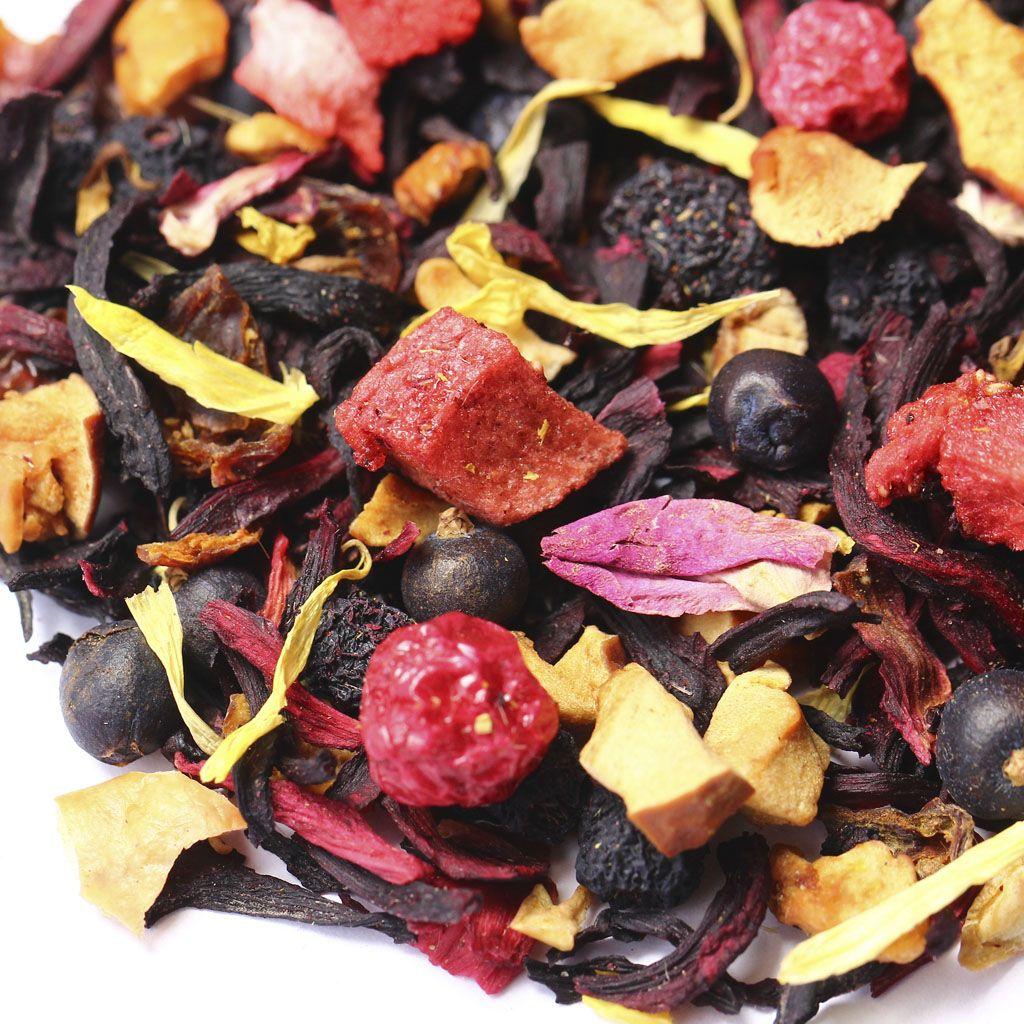 Чай с ярким рубиновым настоем каркаде, сочным ягодным ароматом и натуральной сла...