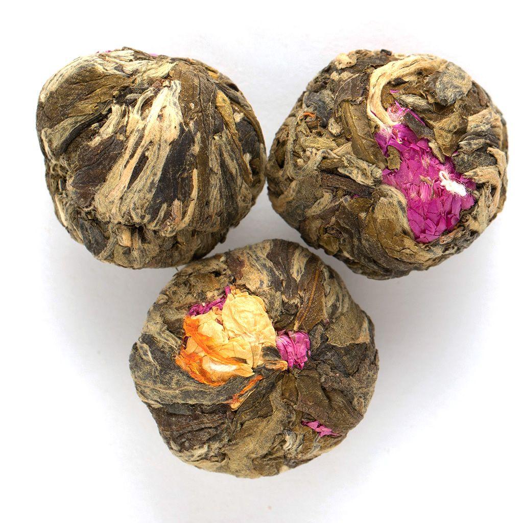 Зелёный китайский связанный чай, который в процессе заваривания дарит эстетическ...