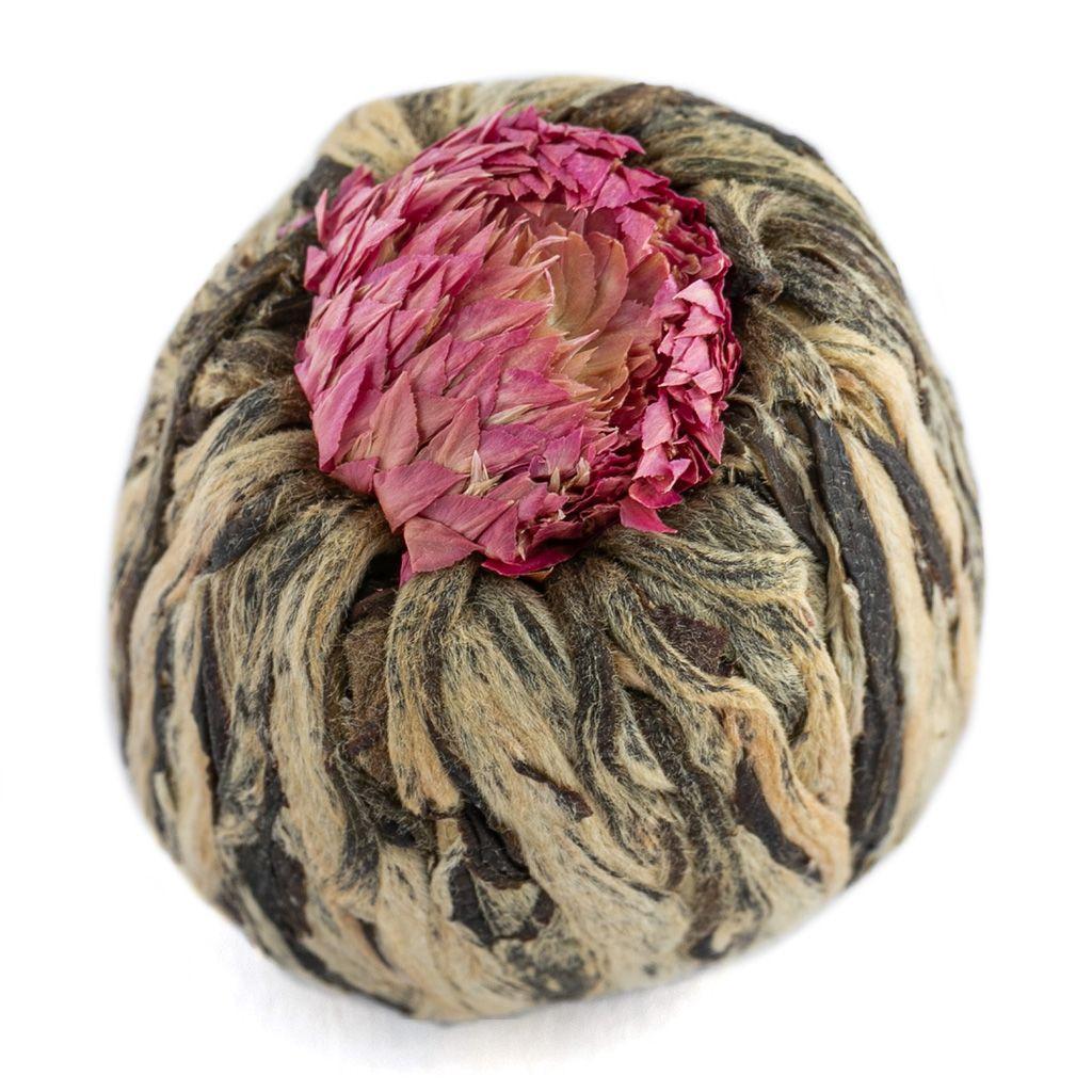 Этот вид связанного чая создается вручную в южной китайской провинции Фуцзянь. В сухом представляет собой небольшой шарик, который после погружения в горячую воду распускается невероятным, ароматным цветком. За счет добавления в состав цветков розового клевера, чай приобретает сладковатые нотки, длительное послевкусие на кончике языка и незабываемый травянистый вкус.