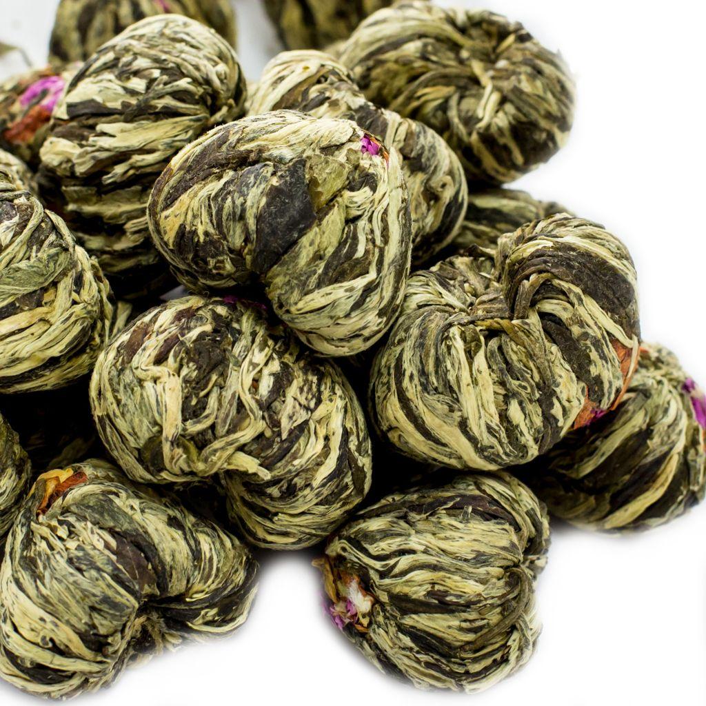 Зелёный китайский связанный чай, который в процессе заваривания дарит эстетическ...