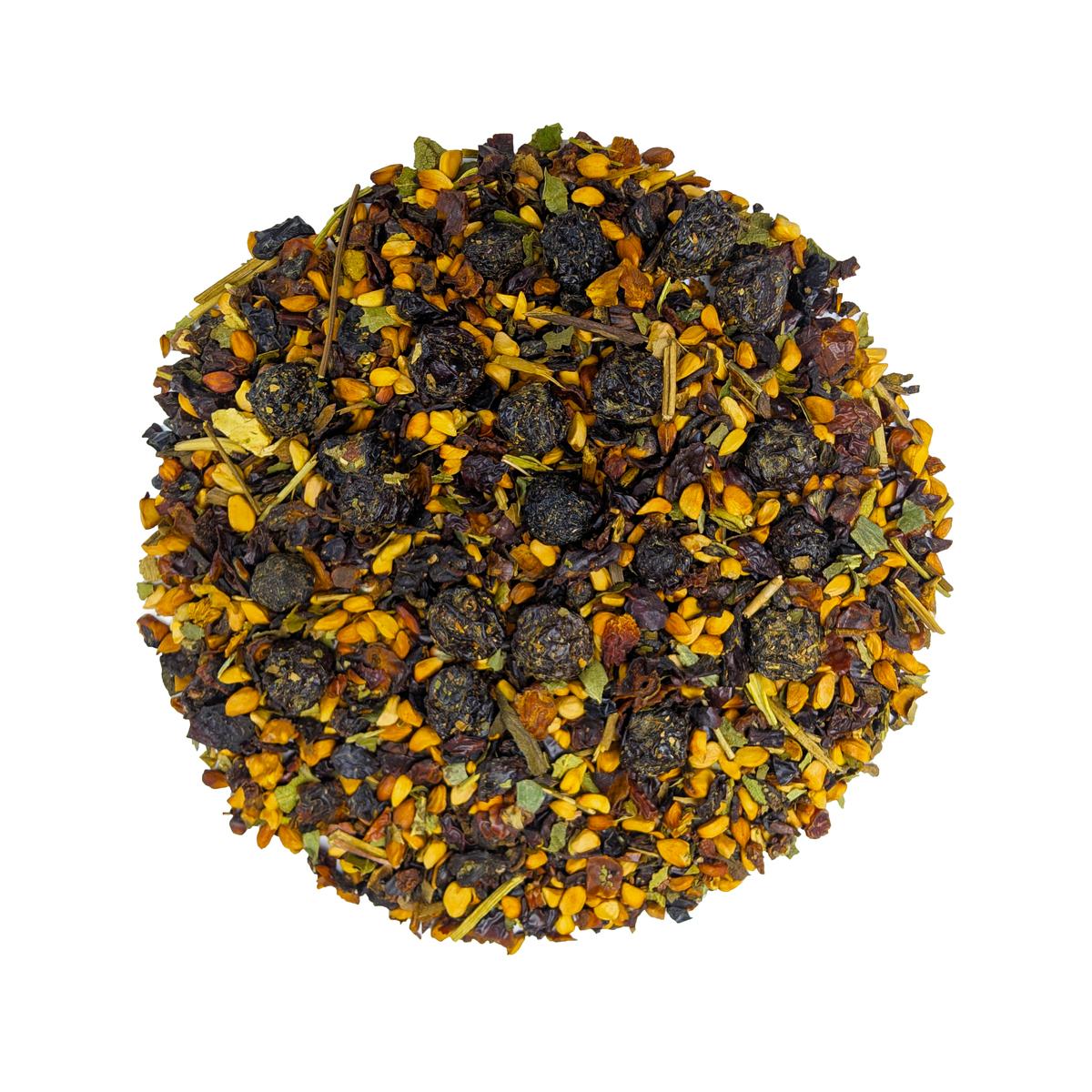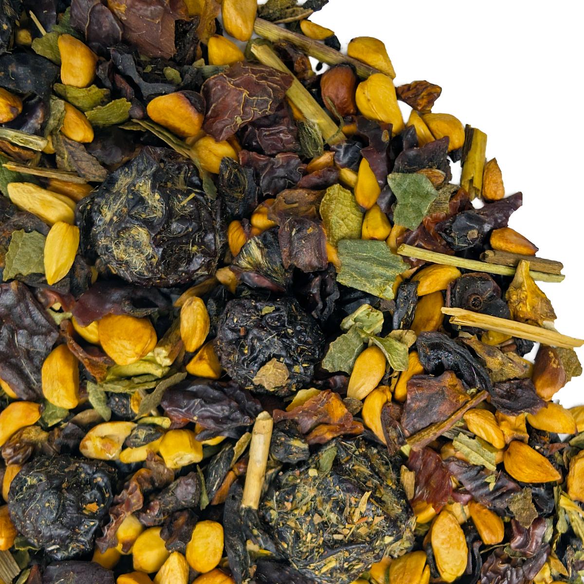 настроение, активизирует жизненные силы организма, снимает усталость. Состав: шиповник, лист клубники, вишня.