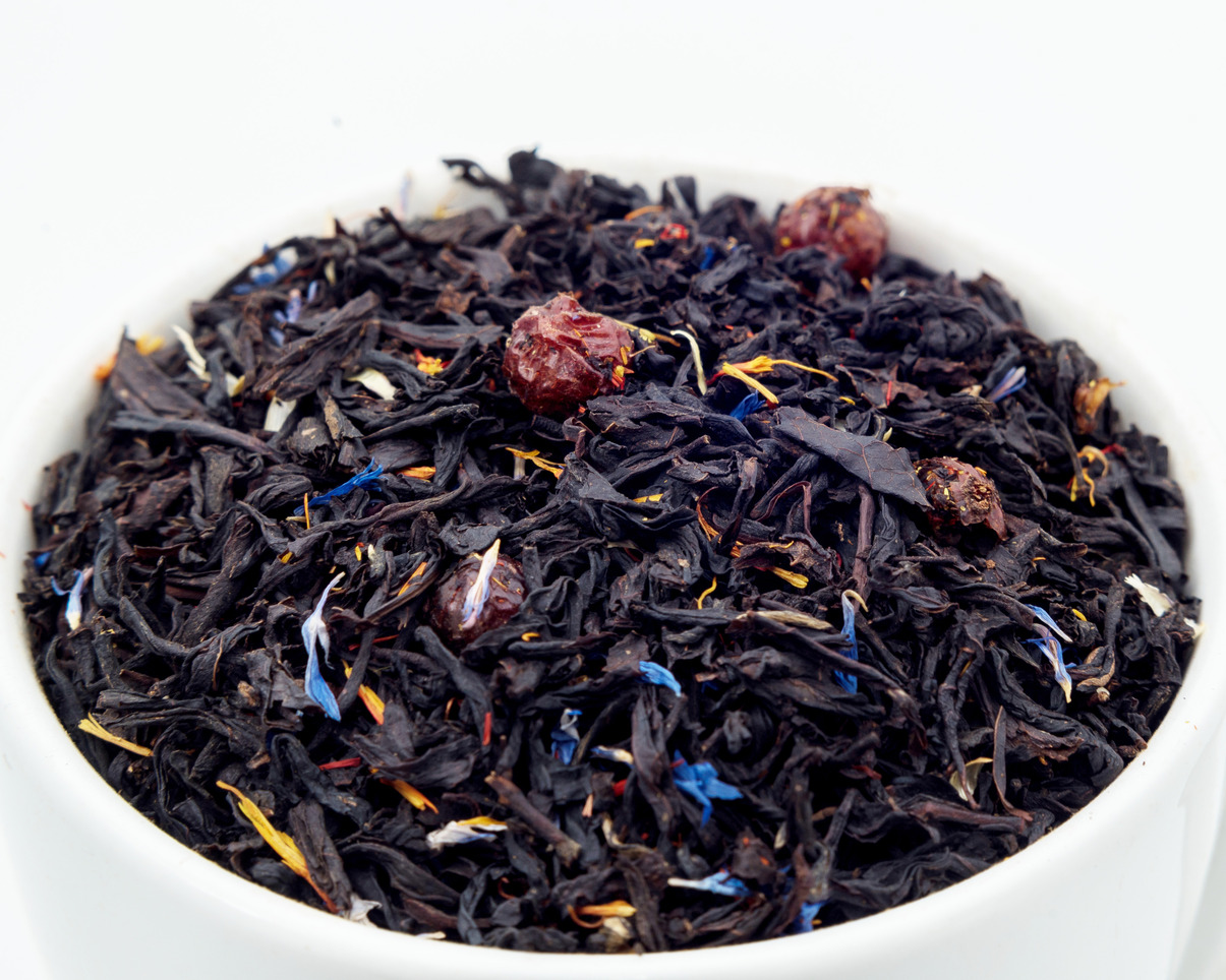 Купаж чёрных чаев с лепестками василька и сафлора, ягодами малины и красной смородины, обладает приятным ягодным ароматом.