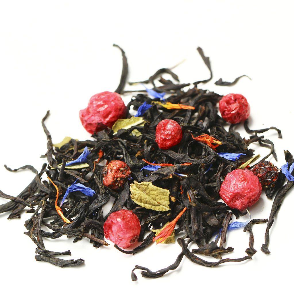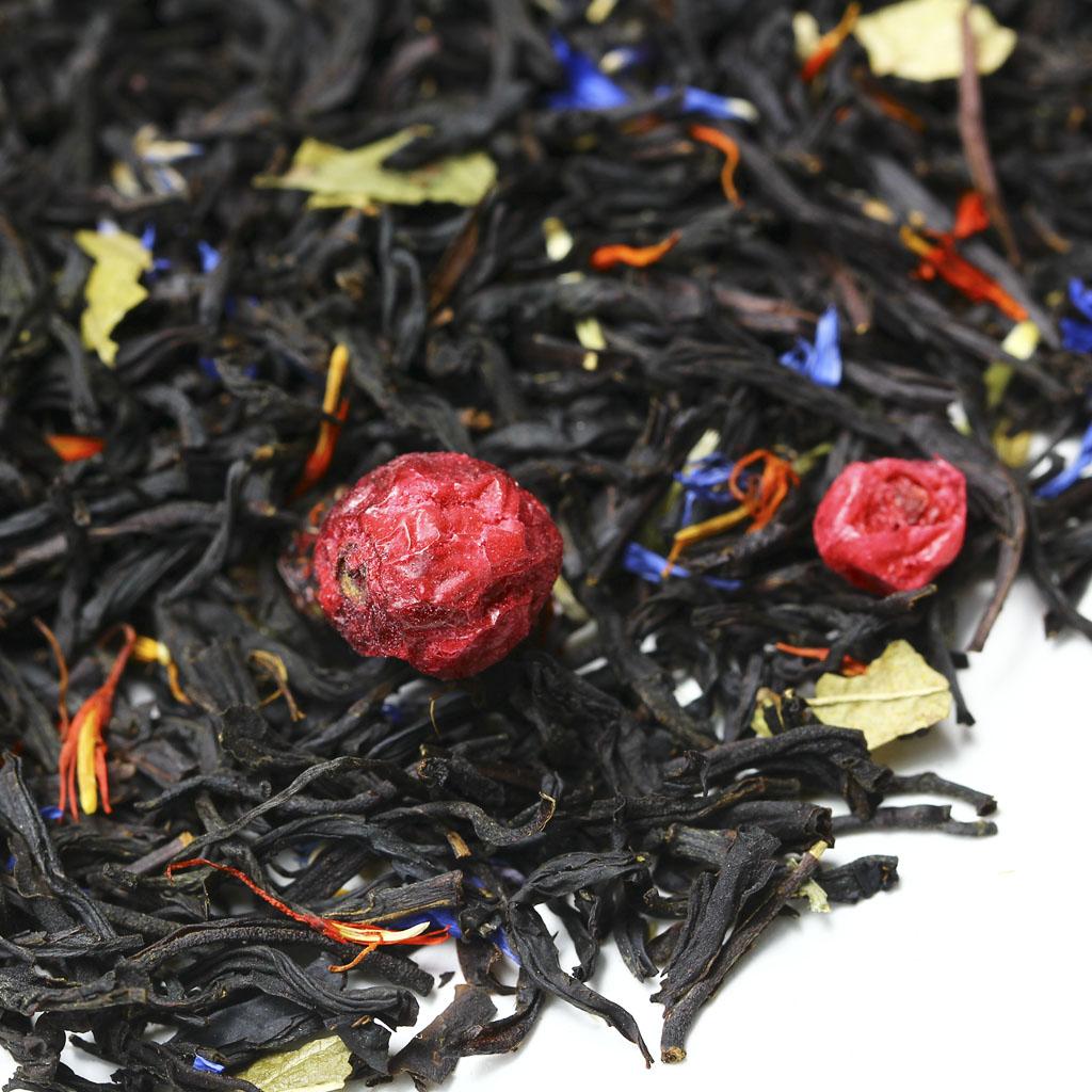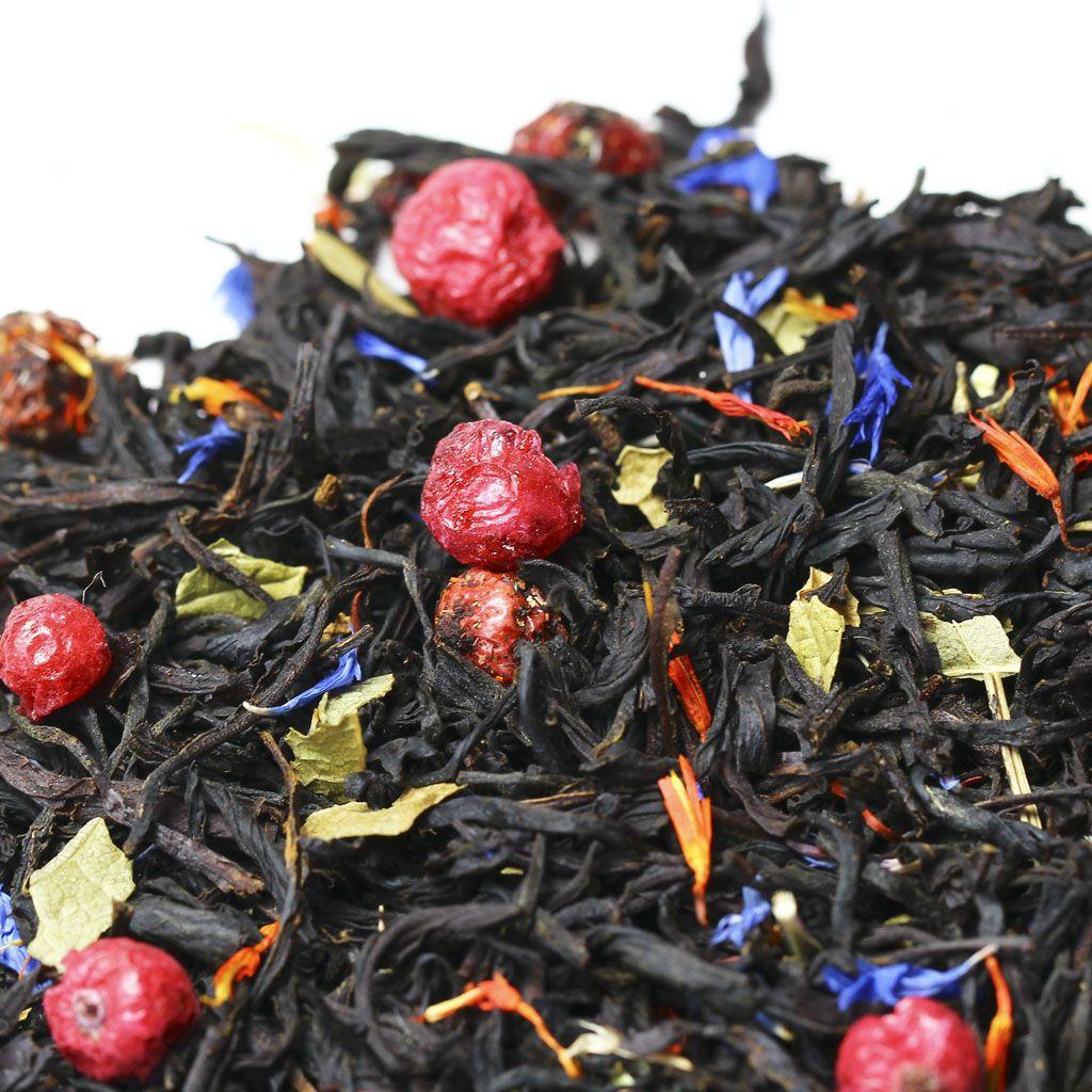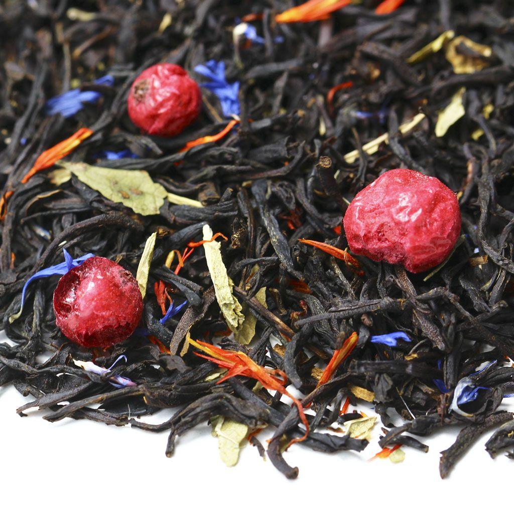 Эффектный купаж на основе черного чая, полный сочных красок, цельных ягод, солне...