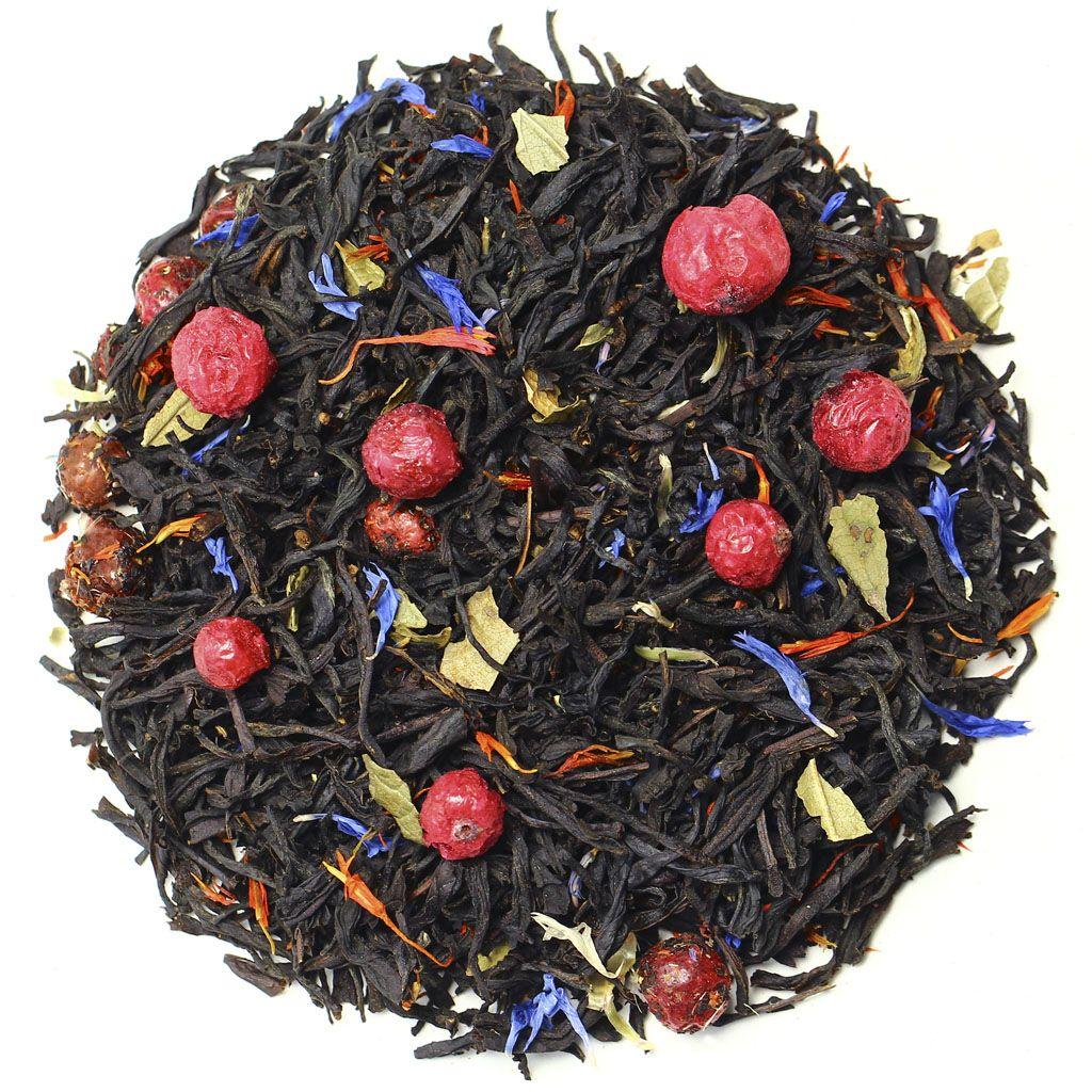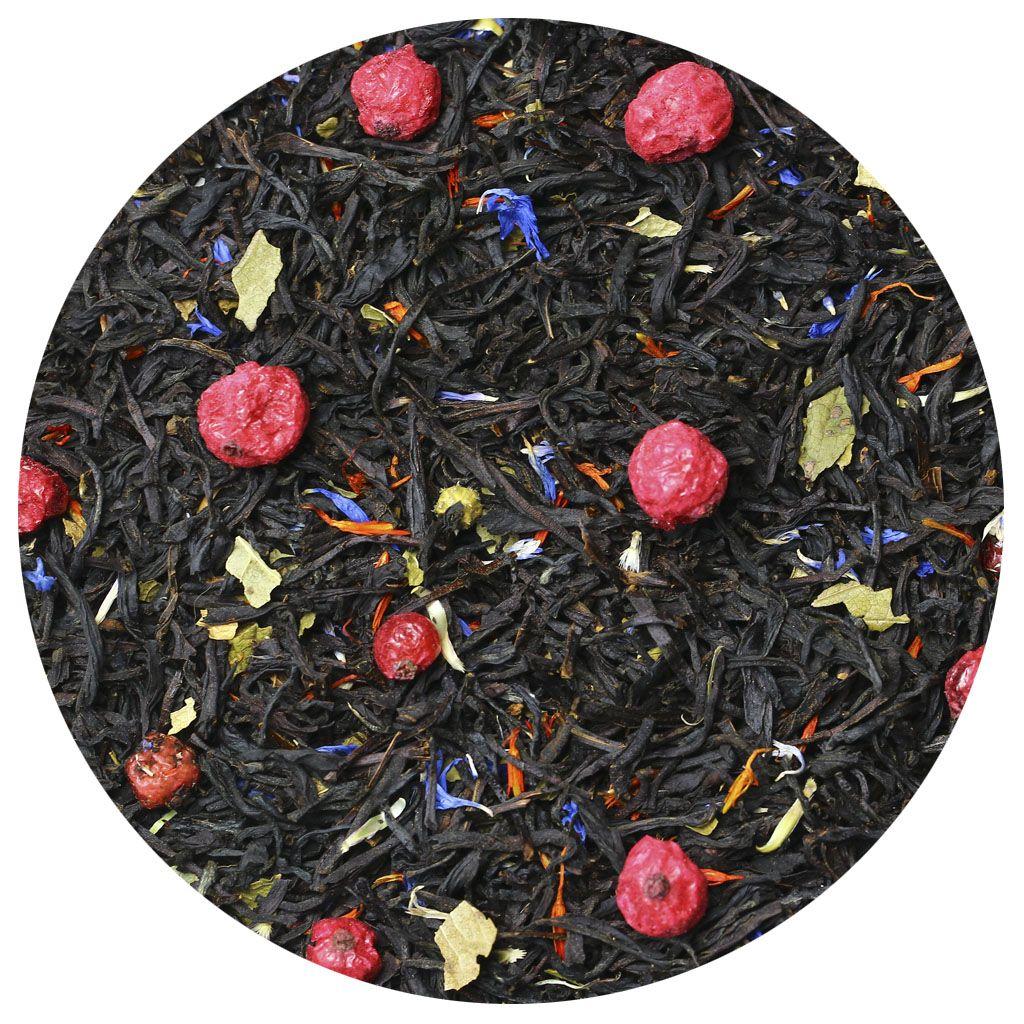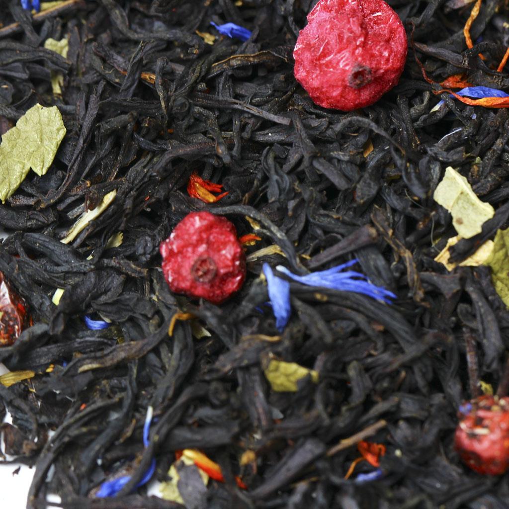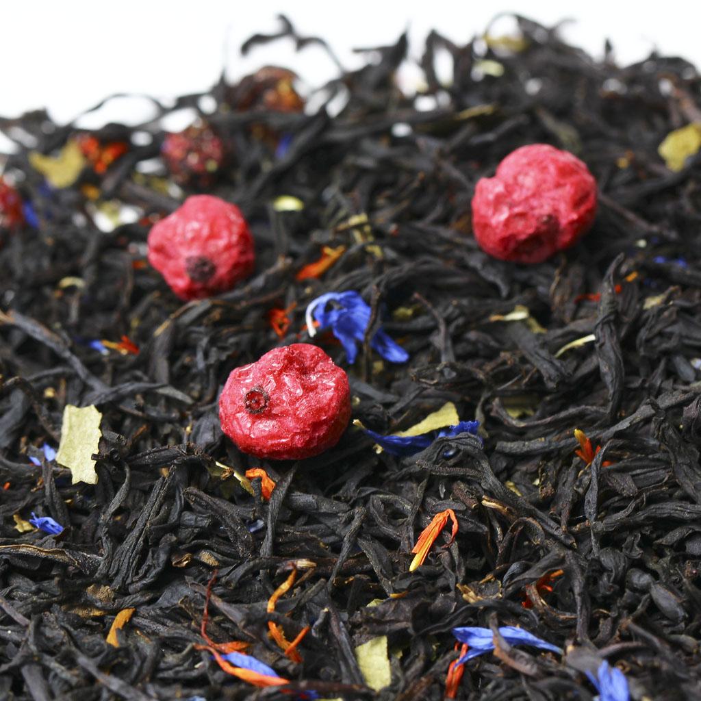 Эффектный купаж на основе черного чая, полный сочных красок, цельных ягод, солне...