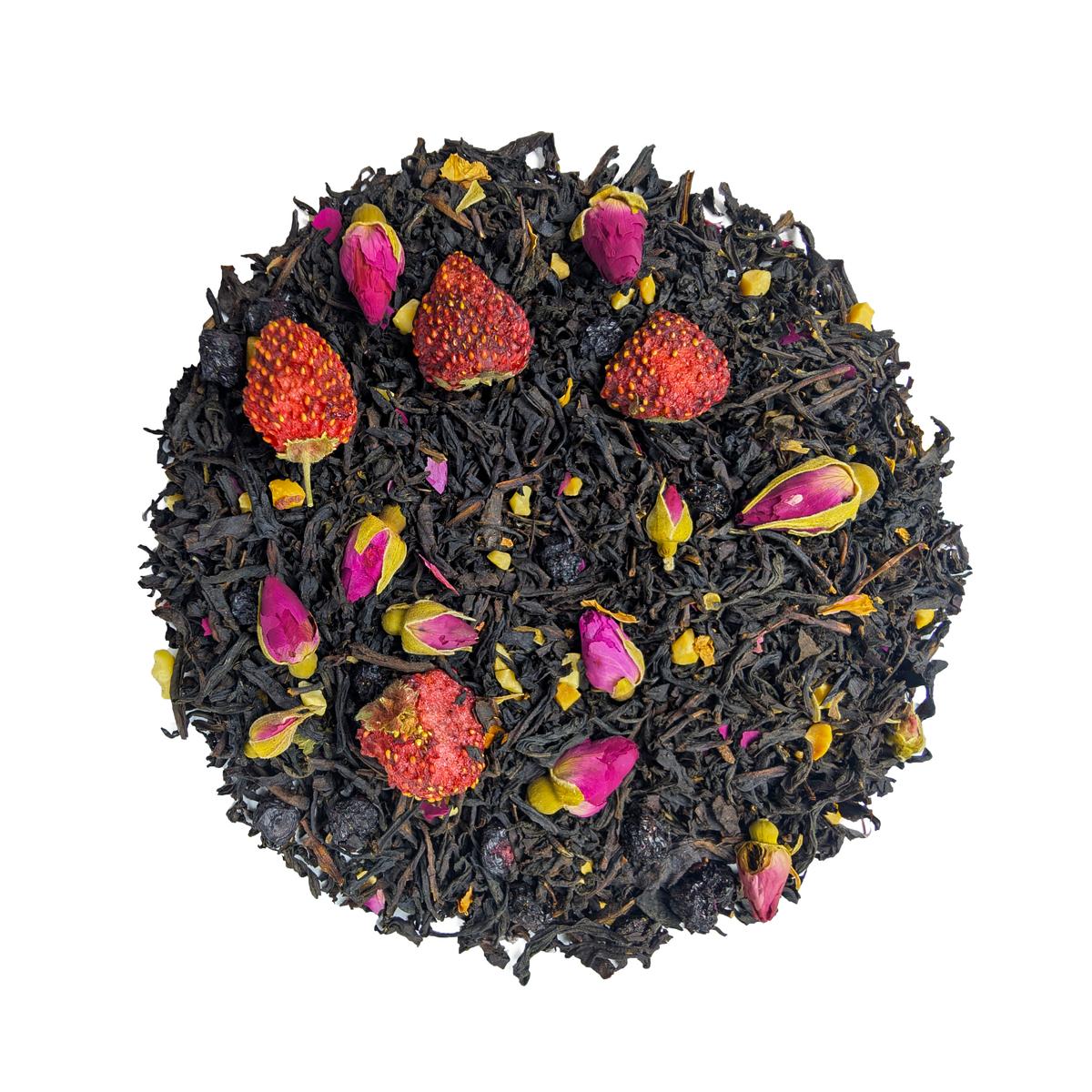 Чёрный индийский чай с цельными ягодами клубники и ежевики, бутонами роз и кусочками жареного миндаля. Чай обладает ярким миндальным ароматом. Рекомендуется пить как с сахаром, так и без сахара.