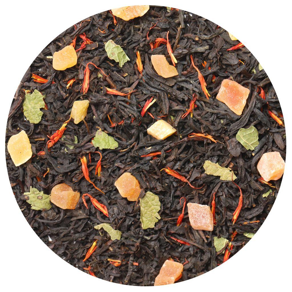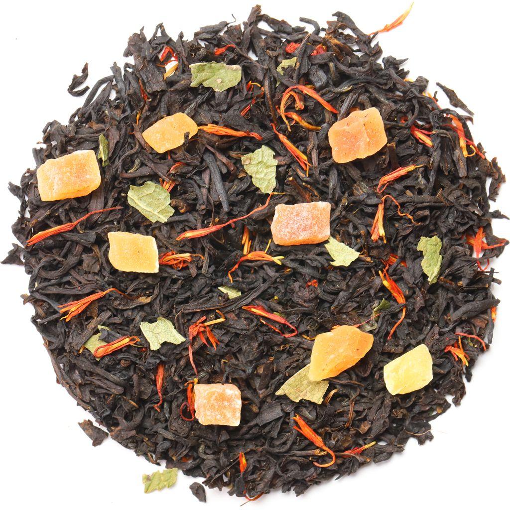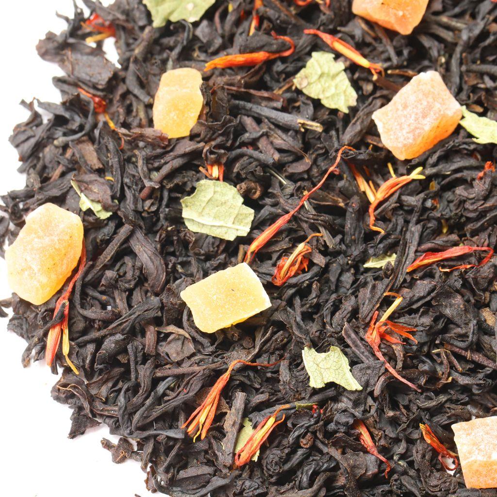 Смесь черных чаев, собранных на индийских плантациях, дополняется сладостью кусочков папайи (тропической дыни) и лепестками сафлора.