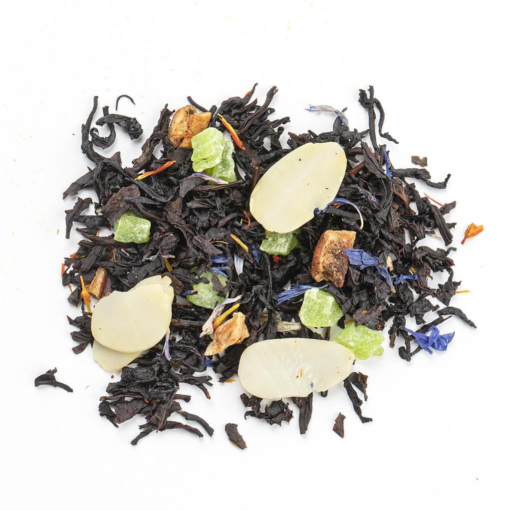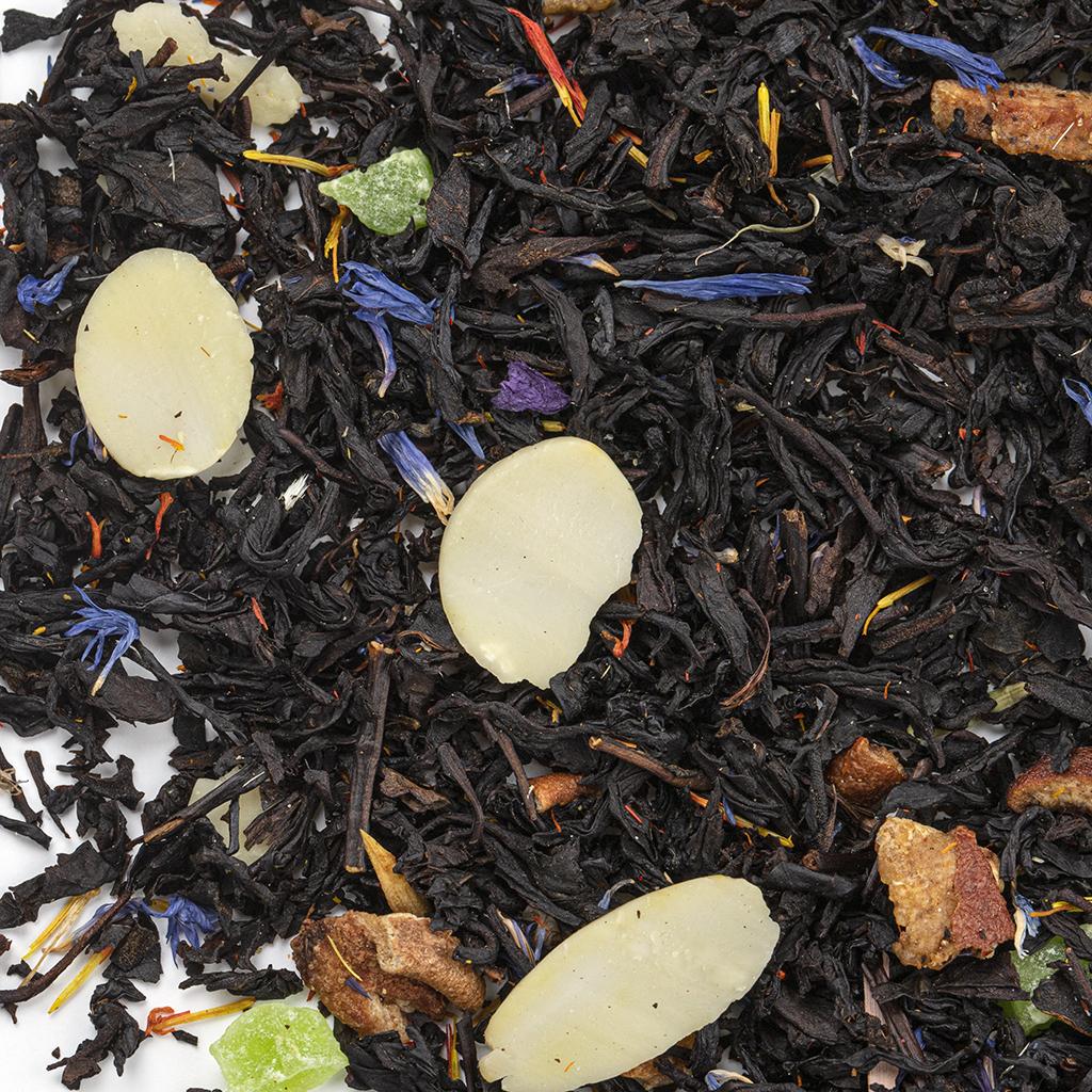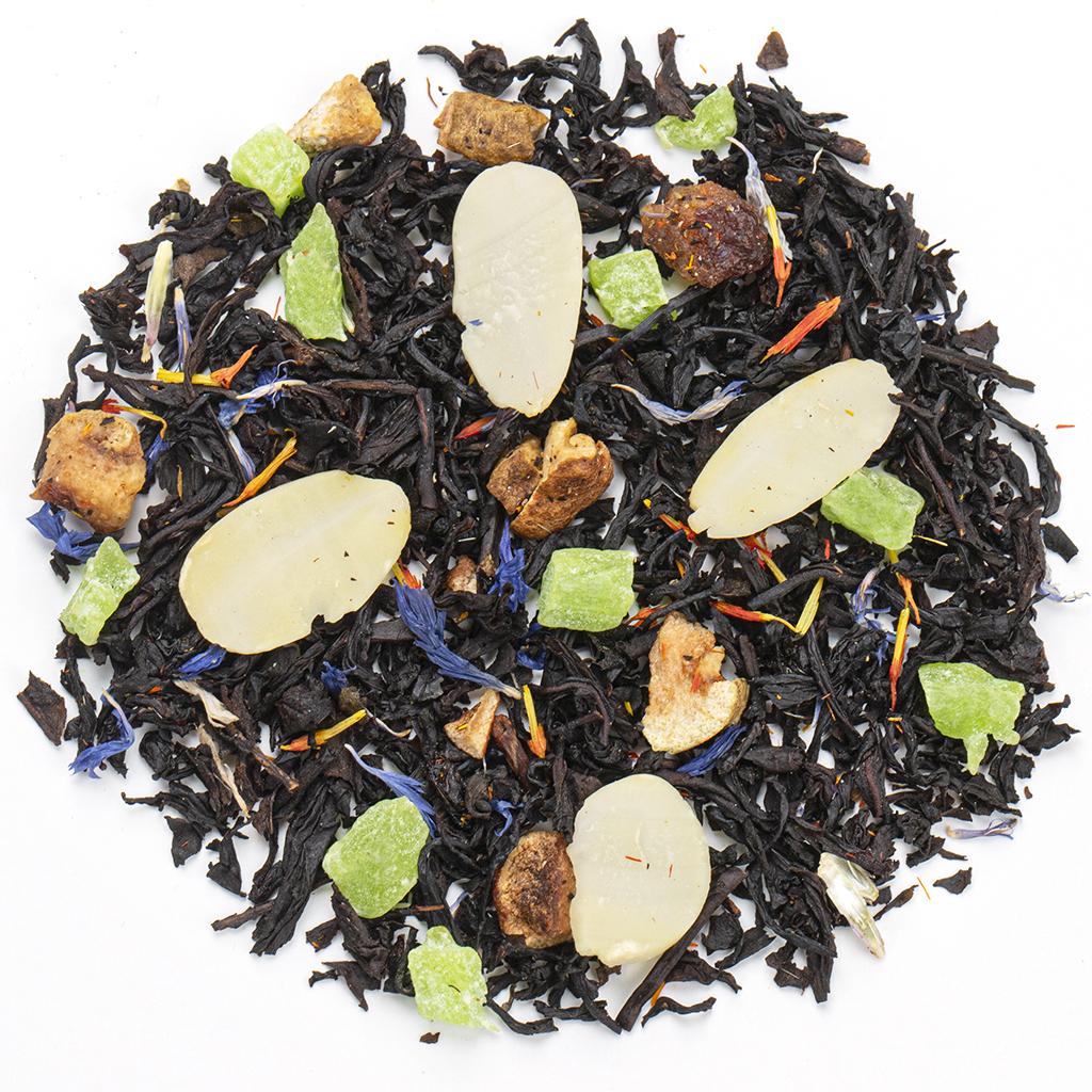 Состав: чай черный индийский, кусочки груши, цукаты ананаса, лепестки миндаля, лепестки сафлора, лепестки василька, аромат восточного сада.