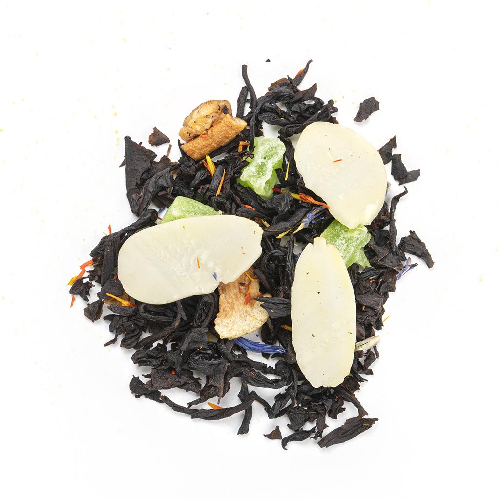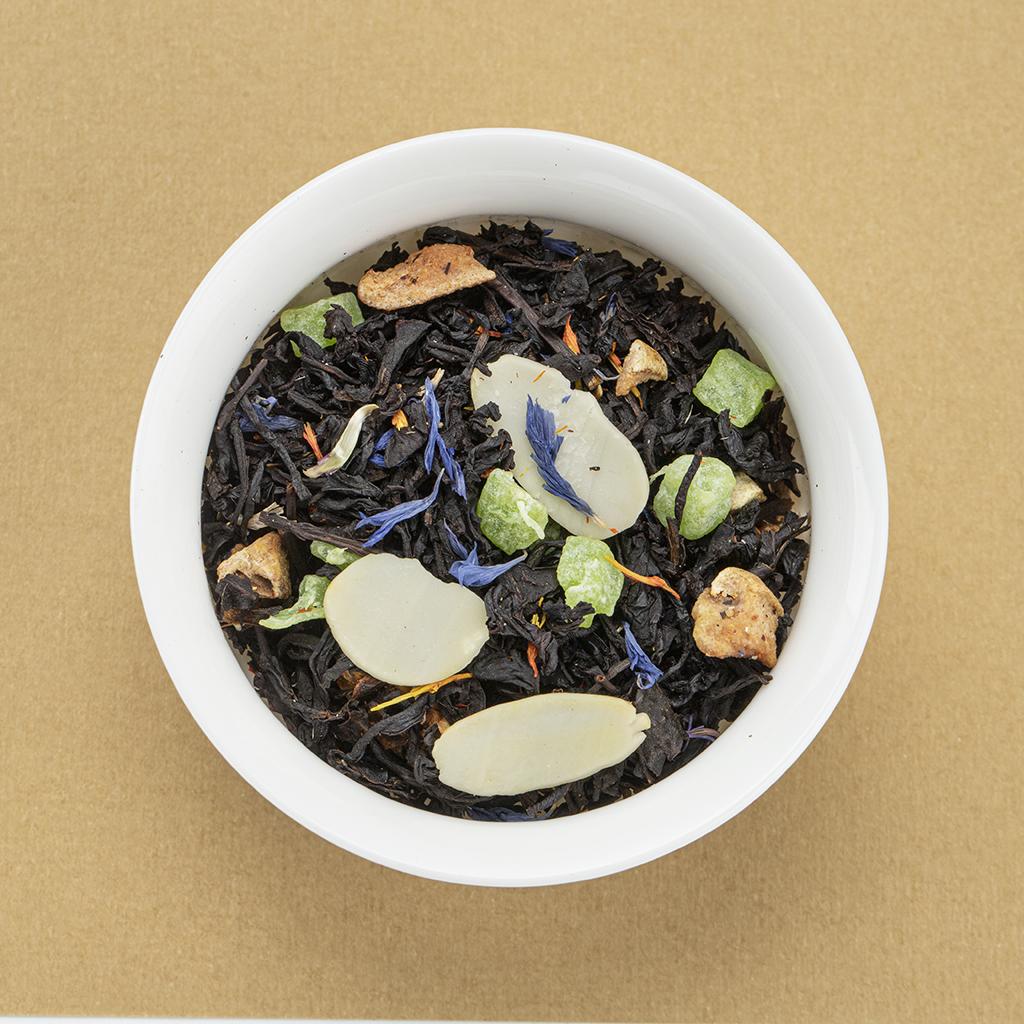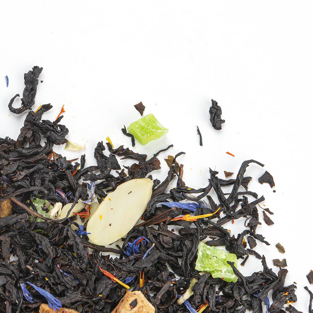 Состав: чай черный индийский, кусочки груши, цукаты ананаса, лепестки миндаля, лепестки сафлора, лепестки василька, аромат восточного сада.
