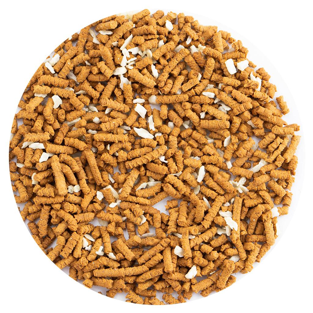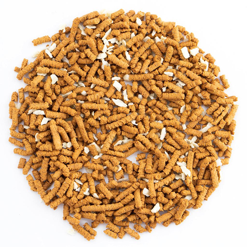 В сухом виде — смесь из зернышек гречихи и кокосовой стружки. Аромат сухой заварки наполнен сладким ароматом кокосового печенья.