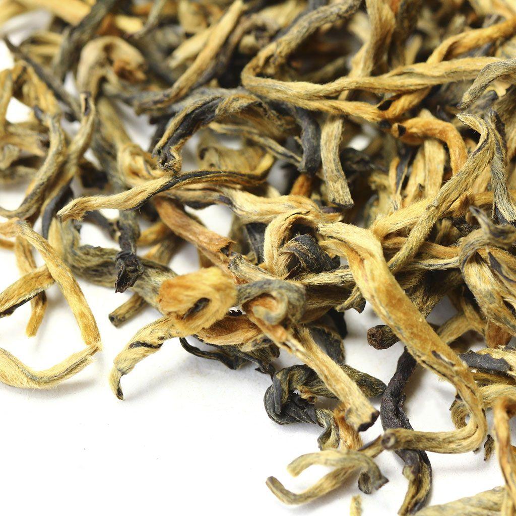 Китайский красный чай премиального качества. В качестве сырья используются нераскрывшиеся почки, пушок на которых в процессе ферментации и сушки приобретает "золотой" цвет. Настой: золотисто-коричневый. Вкус: сладкий, с легкой терпкостью и явными нотками чернослива. Аромат: яркий, чуть сладковатый с нотками чернослива и цветов. Свойства: расслабляет, укрепляет нервную и сердечно-сосудистую систему, положительно влияет на работу почек и общее самочувствие.