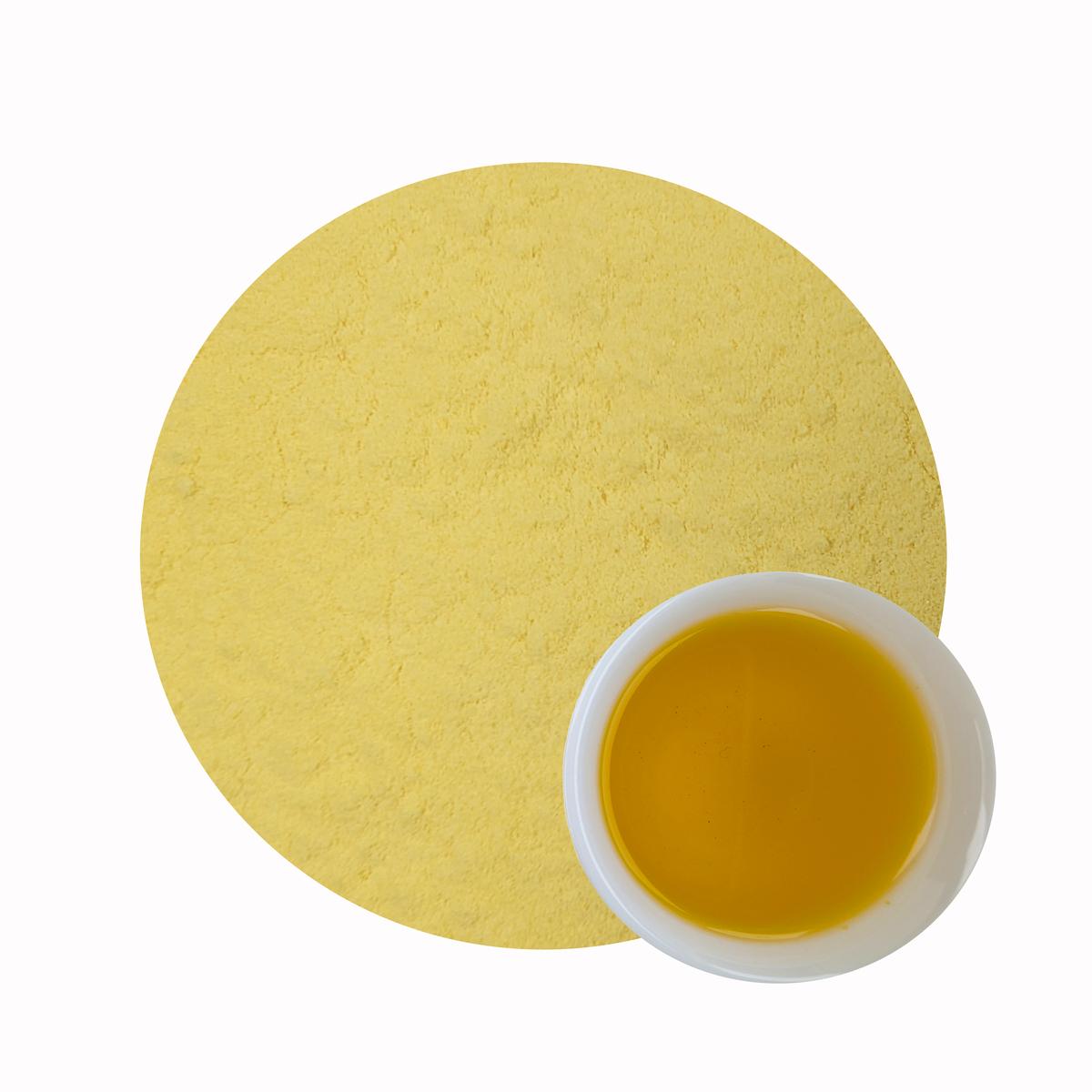 Внешний вид манговой матчи: мелкодисперсная, однородная желто-оранжевая пудра со сладким ароматом.