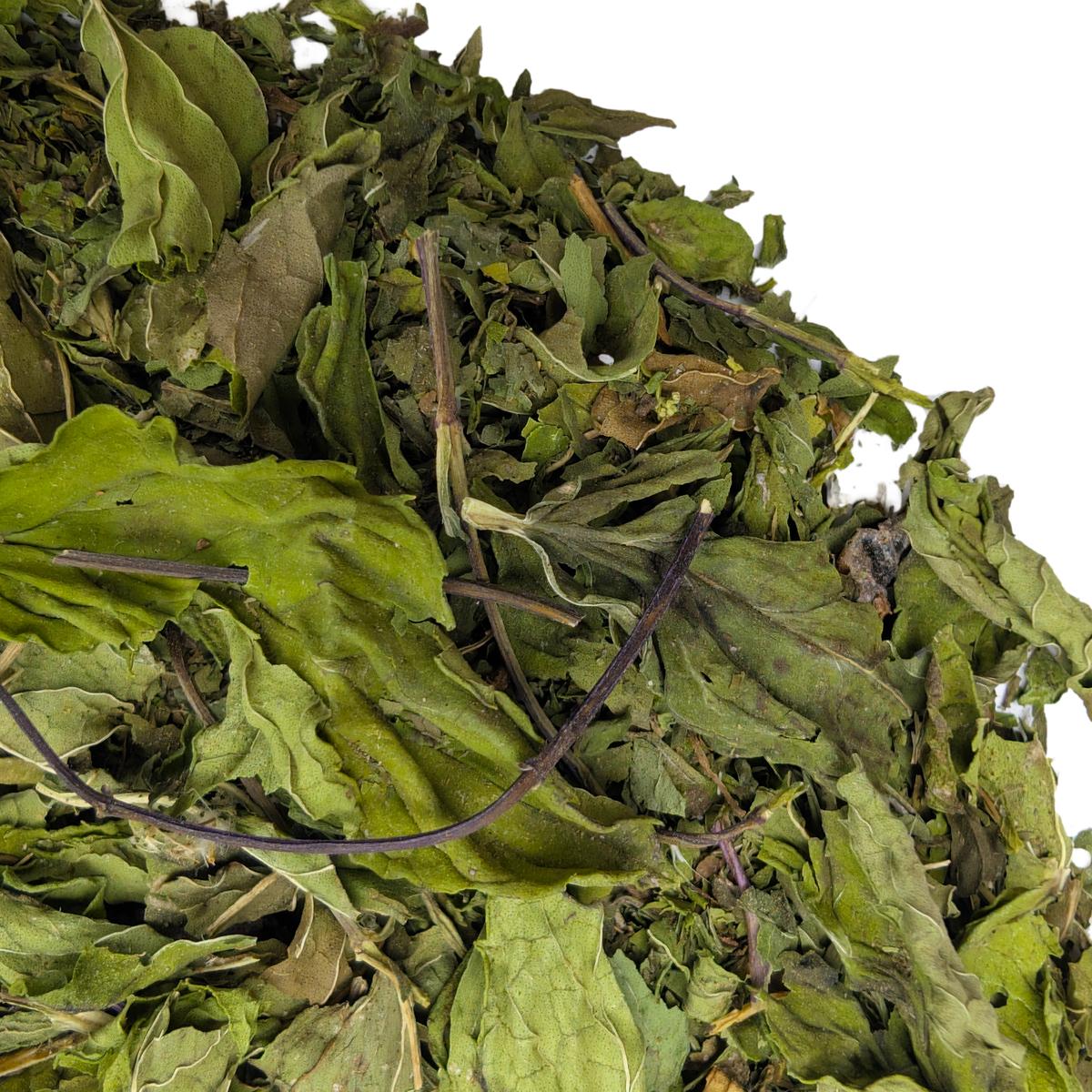 Мятный лист тщательно собирают, высушивают и измельчают. За счёт того, что мяту хранят в холодных помещениях, она сохраняет свой аромат.