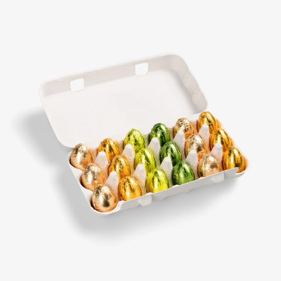 Удивите своих друзей пасхальным подарком в оригинальной упаковке. В этой миниатюрной коробке 18 разноцветных пасхальных яиц: шесть молочных яиц пралине с начинкой из молочного шоколада, шесть молочных яиц пралине с начинкой из молочного шоколада и фундука, три белых миндальных яйца с миндальной начинкой и три темных яйца с начинкой из темного трюфеля. Знаменитый на весь мир швейцарский шоколад без консервантов. Швейцарский шоколад, который любят сами швейцарцы. Прямая доставка из Швейцарии в Москву 21-28 дней. Минимальный заказ от 10.000р, одного вида или в ассортименте LADERACH.
