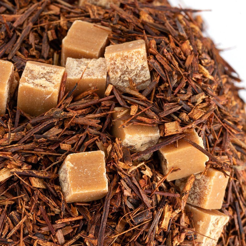 чистый ройбуш — это напиток без противопоказаний: он подойдет детям, беременным, людям с хроническими заболеваниями. Его тонизирующее действие настолько мягкое, что не перевозбуждает нервную систему. Не содержит кофеин, полезен для сердечно-сосудистой системы, содержит антиоксиданты. Состав: Ройбуш, кусочки ванильной карамели.