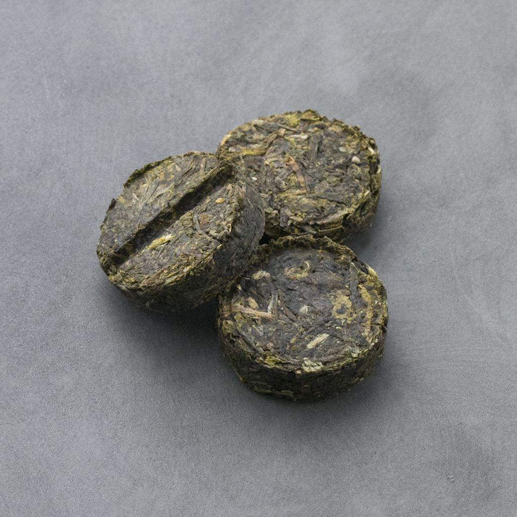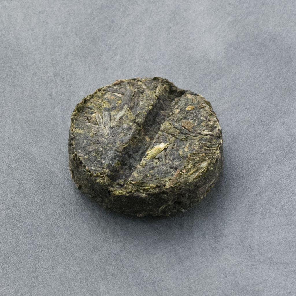 Маленький блинчик темного пуэра из мелколистового сырья с большим количеством по...