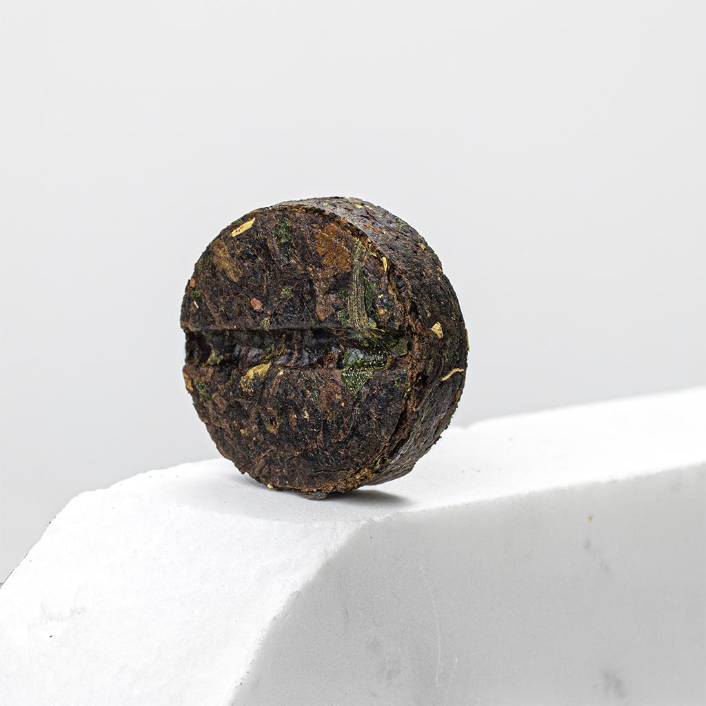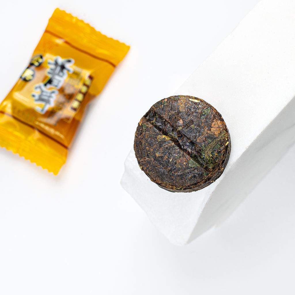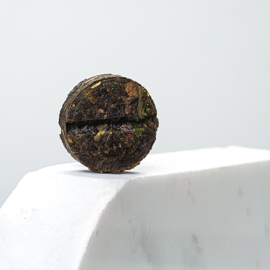 Прессованный в таблетку весом 8 грамм Шу Пуэр Точа с рисом мини-фрукт. Дает насыщенный настой с терпким бодрящим вкусом и густым ароматом. Заваривается несколько раз.