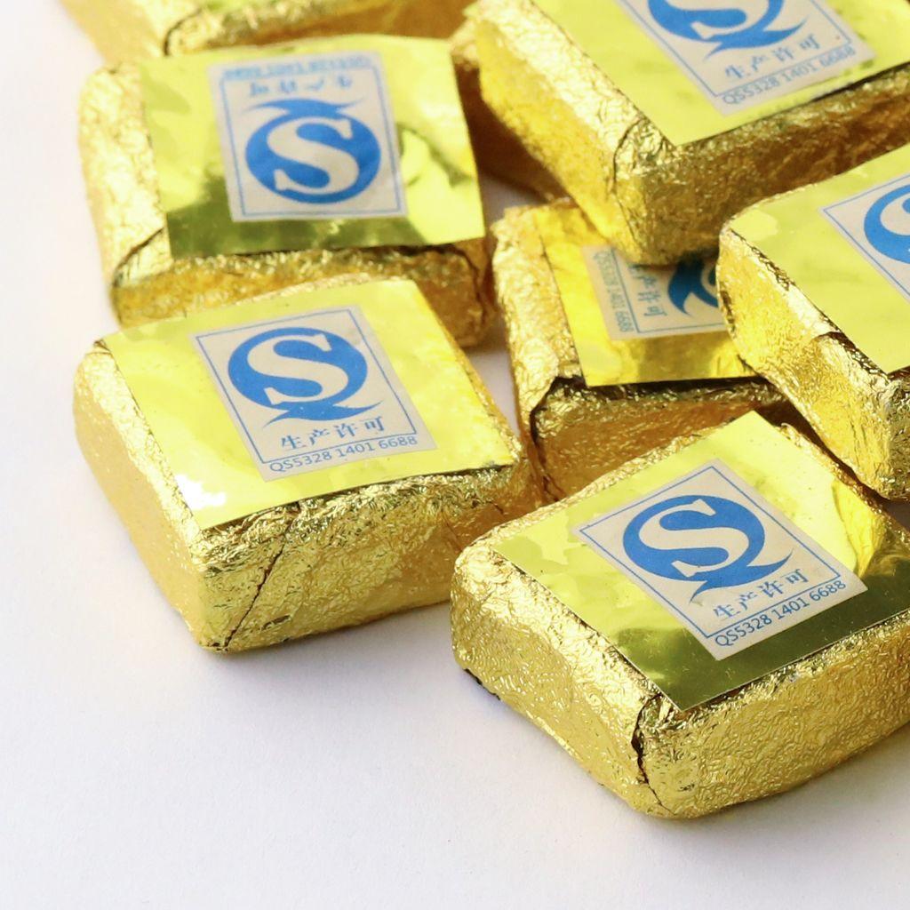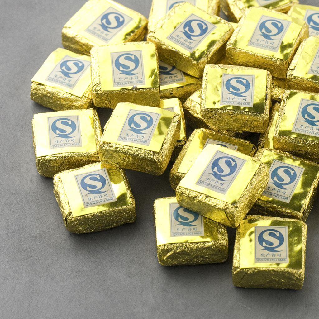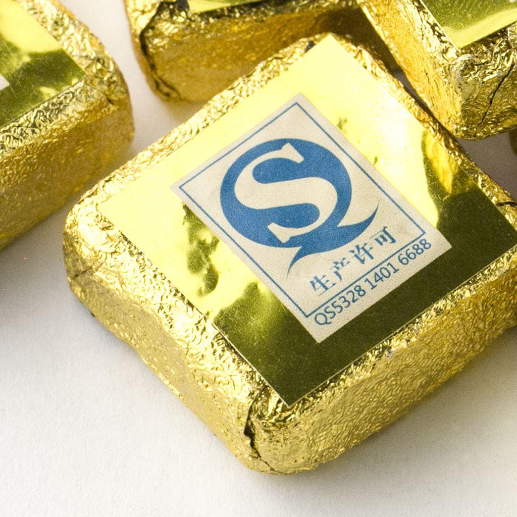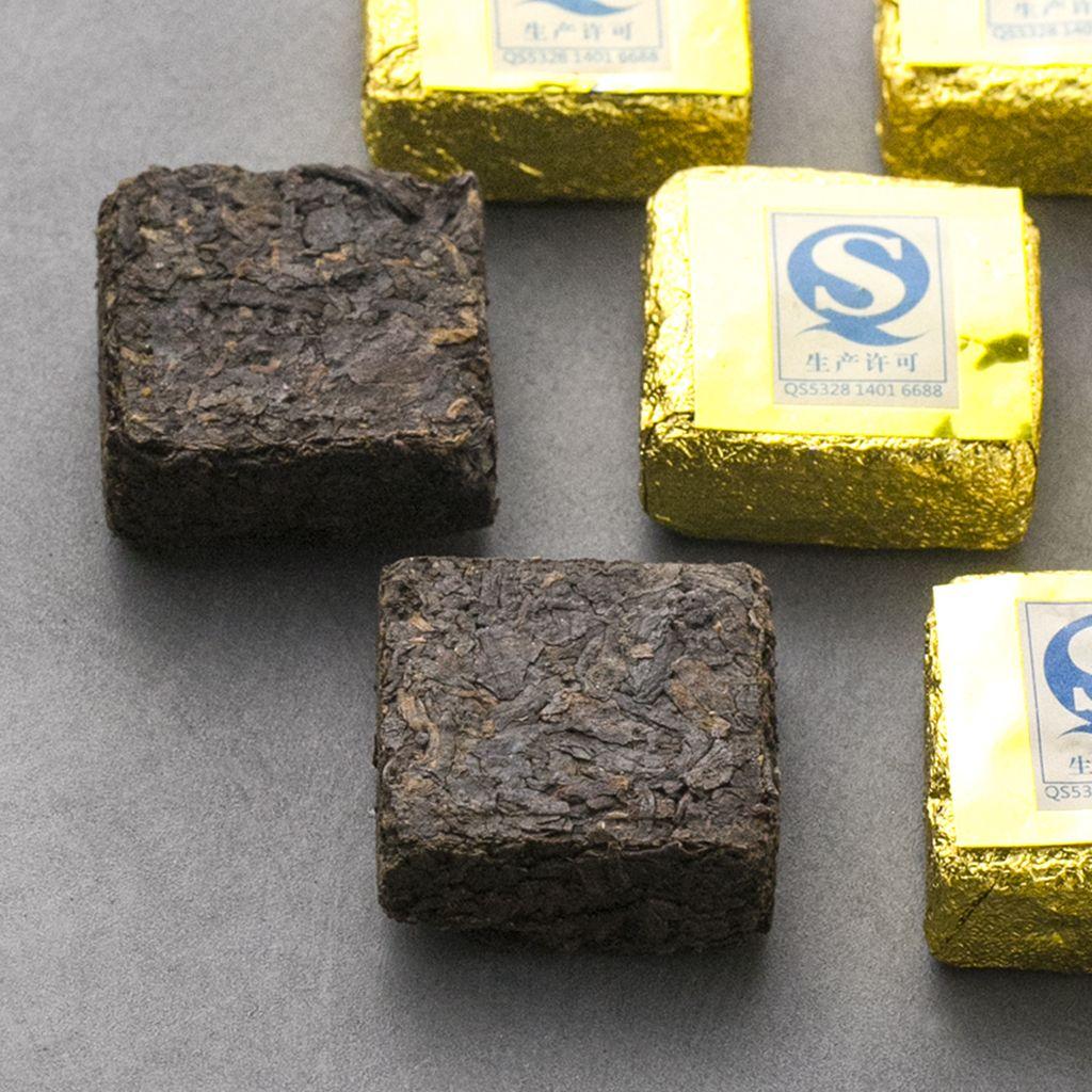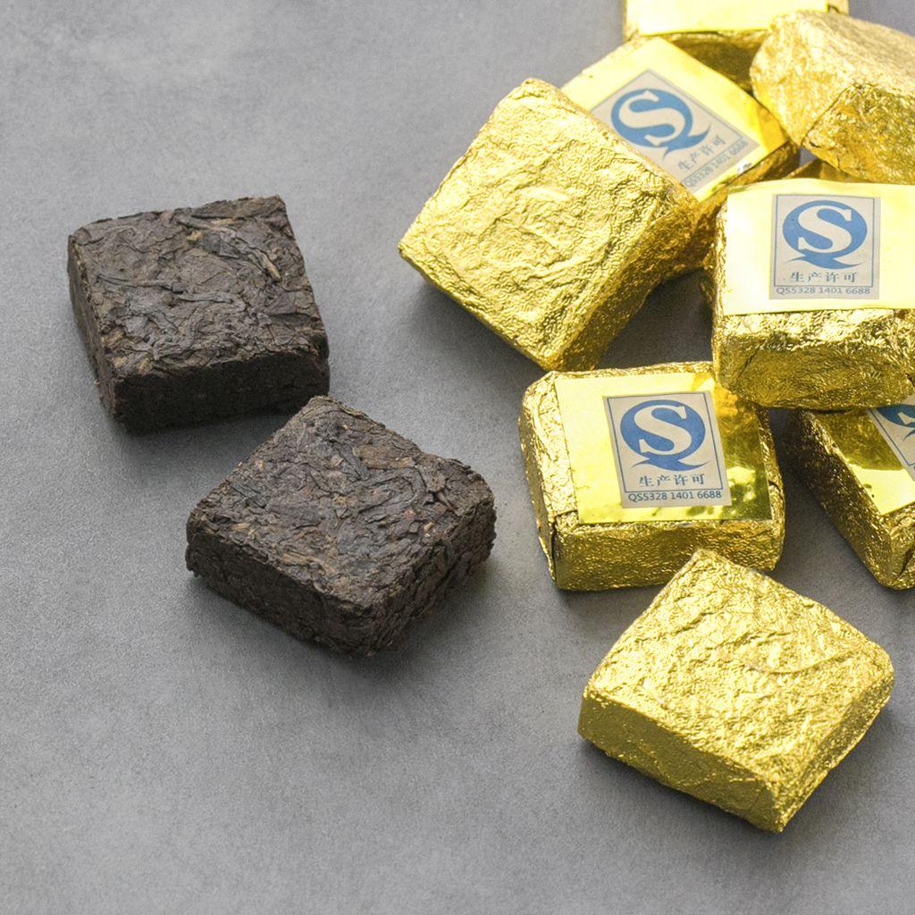 Название происходит от особенностей прессовки. Пуэр представляет собой небольшой квадратик золотисто-коричневого цвета из спрессованных чайных листьев. Квадратик обернут в плотную фольгу, для удобства хранения. Каждый квадратик имеет вес 6 граммов. Именно такая порция необходима для индивидуальной заварки. Чай очень удобно брать с собой в дорогу.