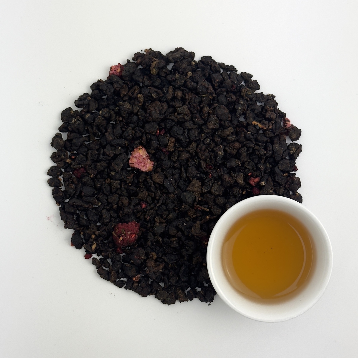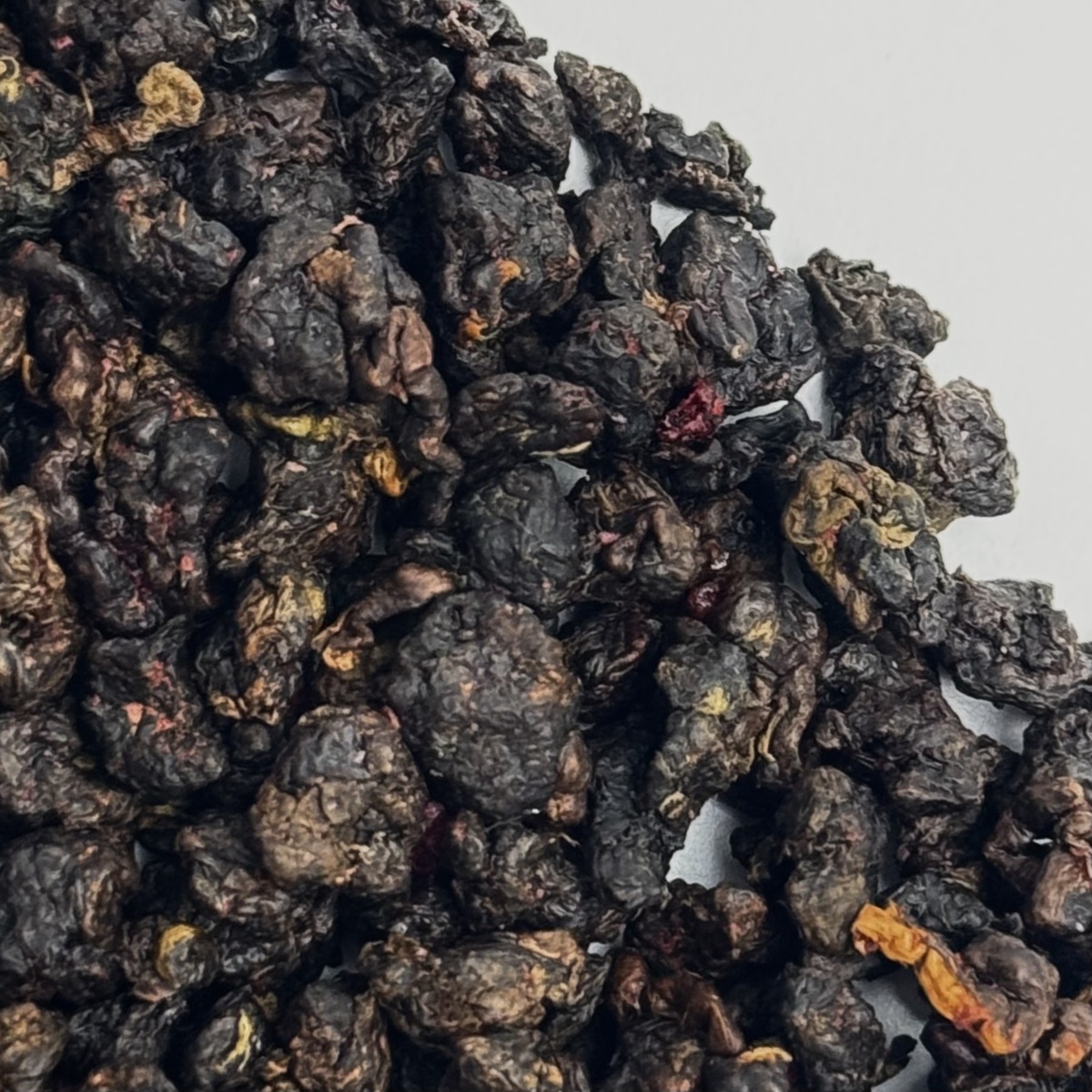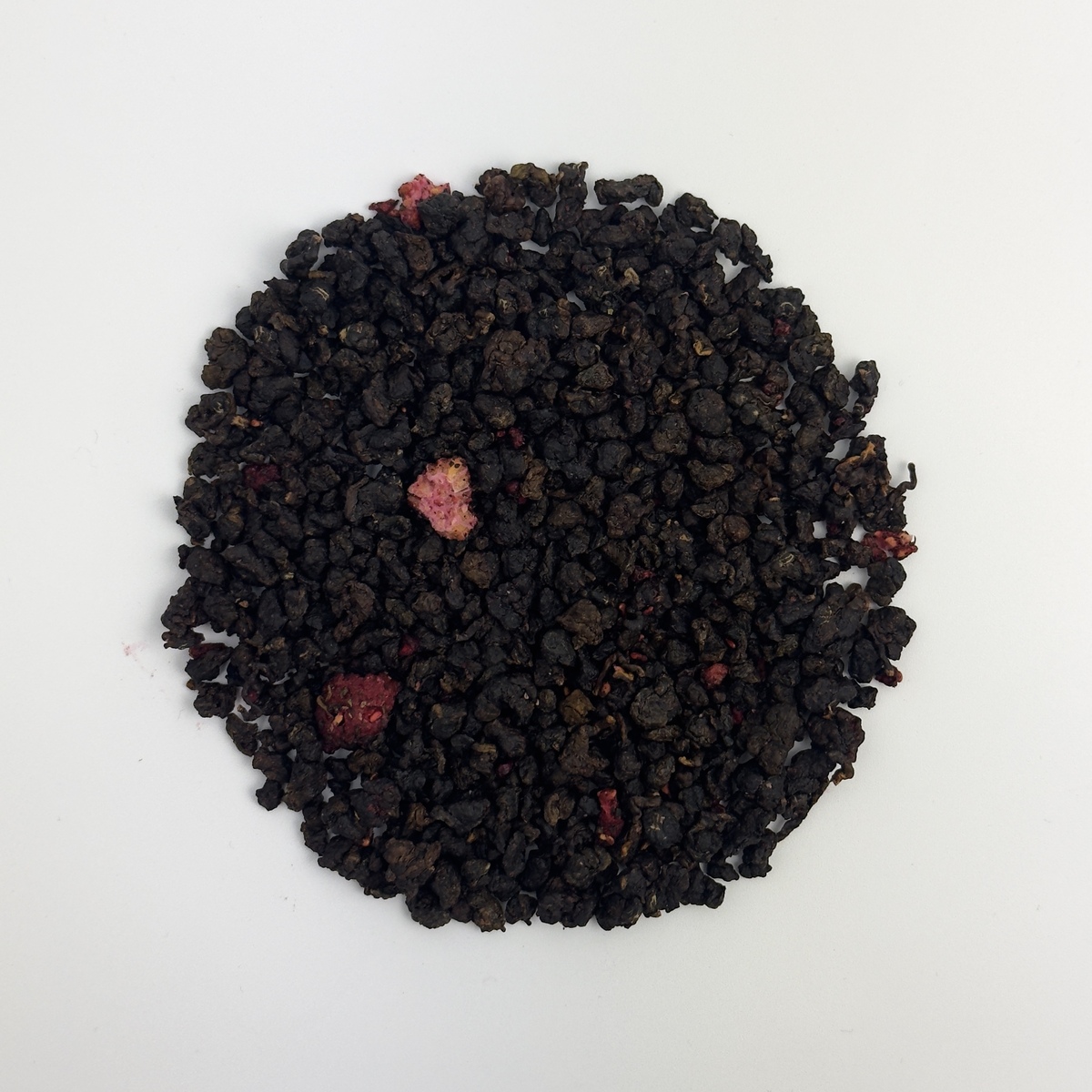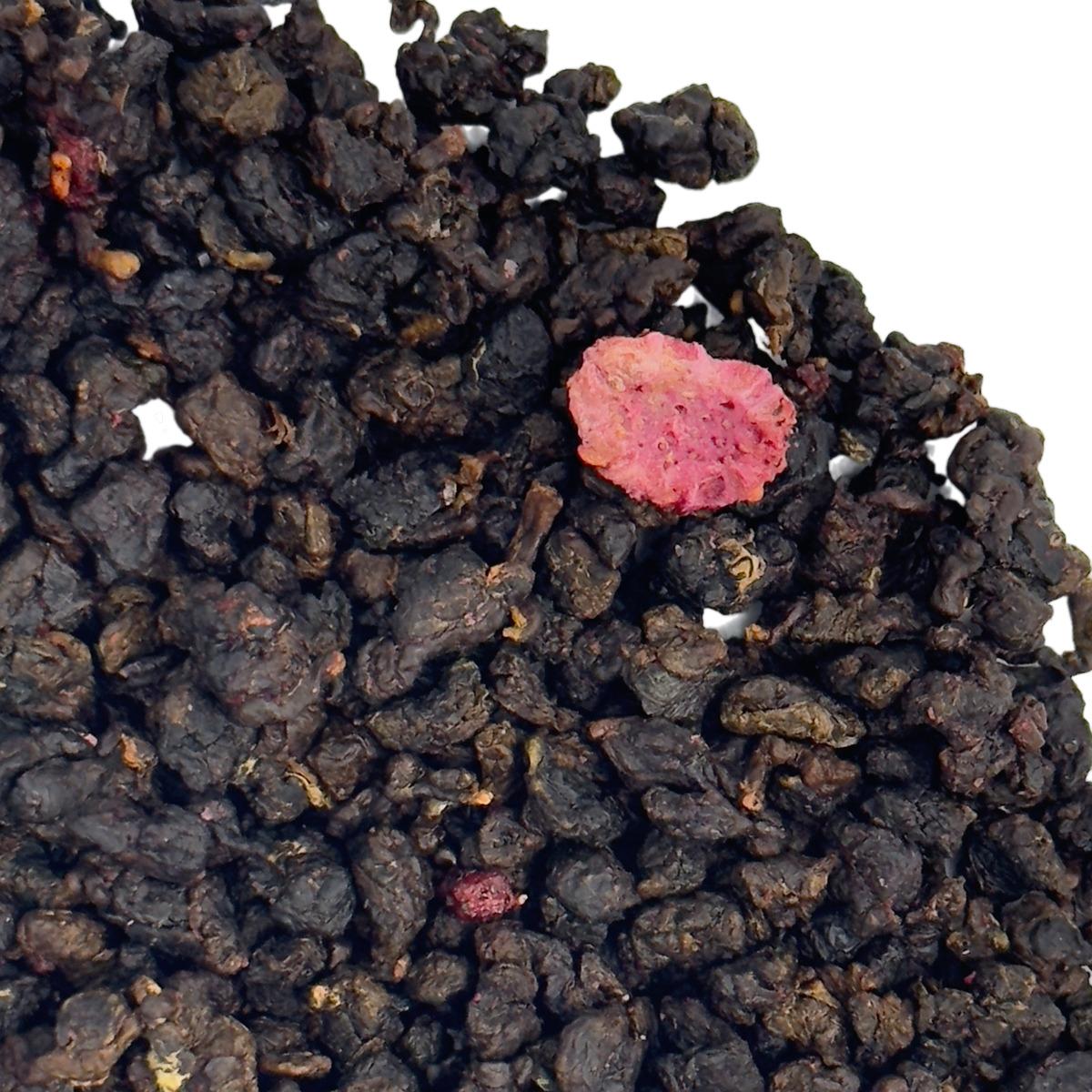 В сухом виде чай Габа Малина представляет собой россыпь небольших темных плотно скрученные листочков чая с аппетитными ягодами и кусочками малины. У сухой заварки знакомый всем аромат малинового варенья.