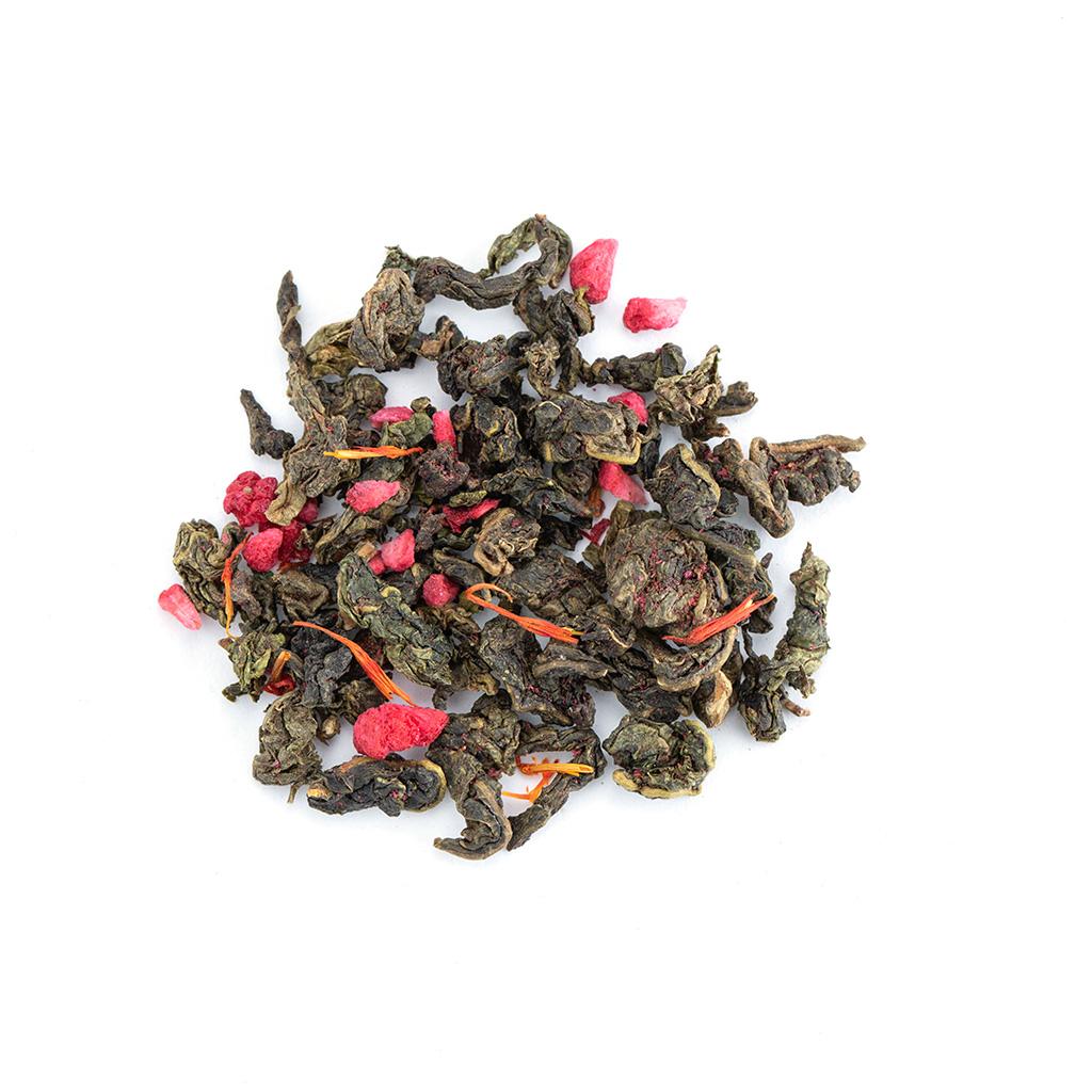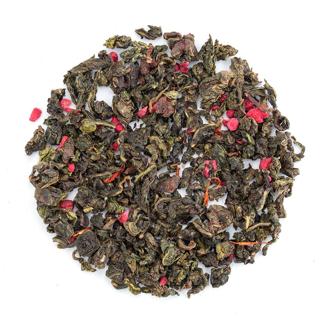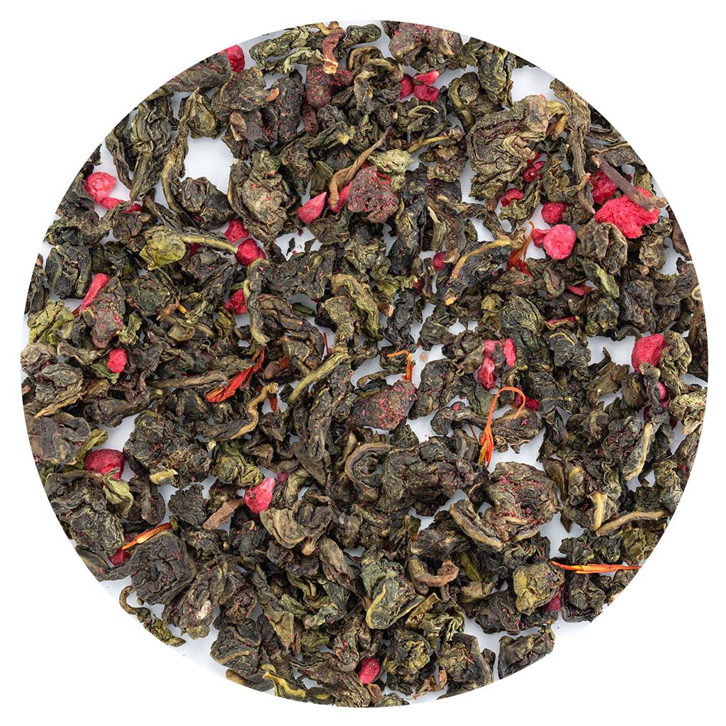 Ароматный букет, составленный из кусочков спелой малины с добавлением лепестков василька, на основе китайского улуна.