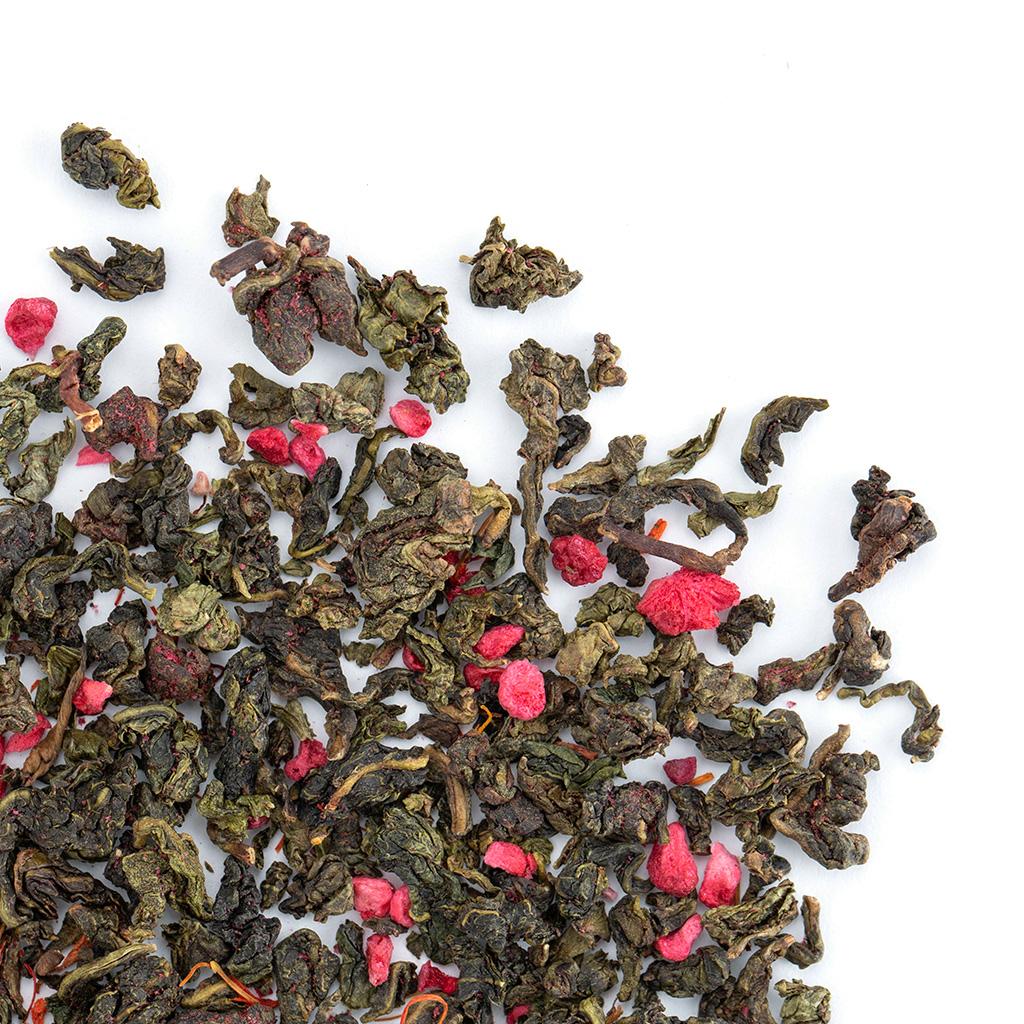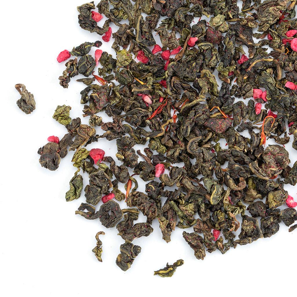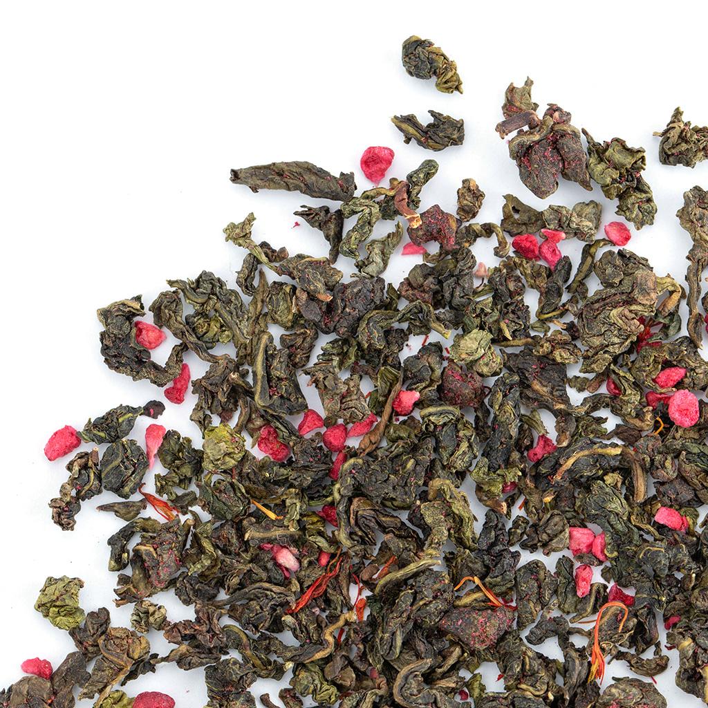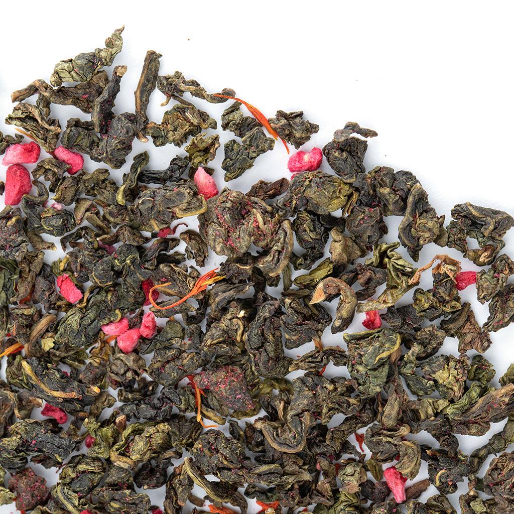 Ароматный букет, составленный из кусочков спелой малины с добавлением лепестков василька, на основе китайского улуна.