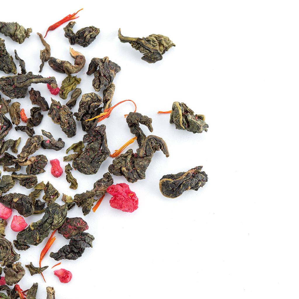Высокогорный светлый улун из садов Нинся с цветами жасмина и алыми плодами годжи...