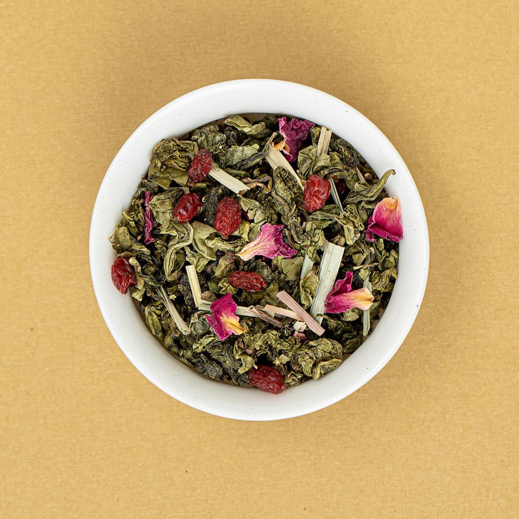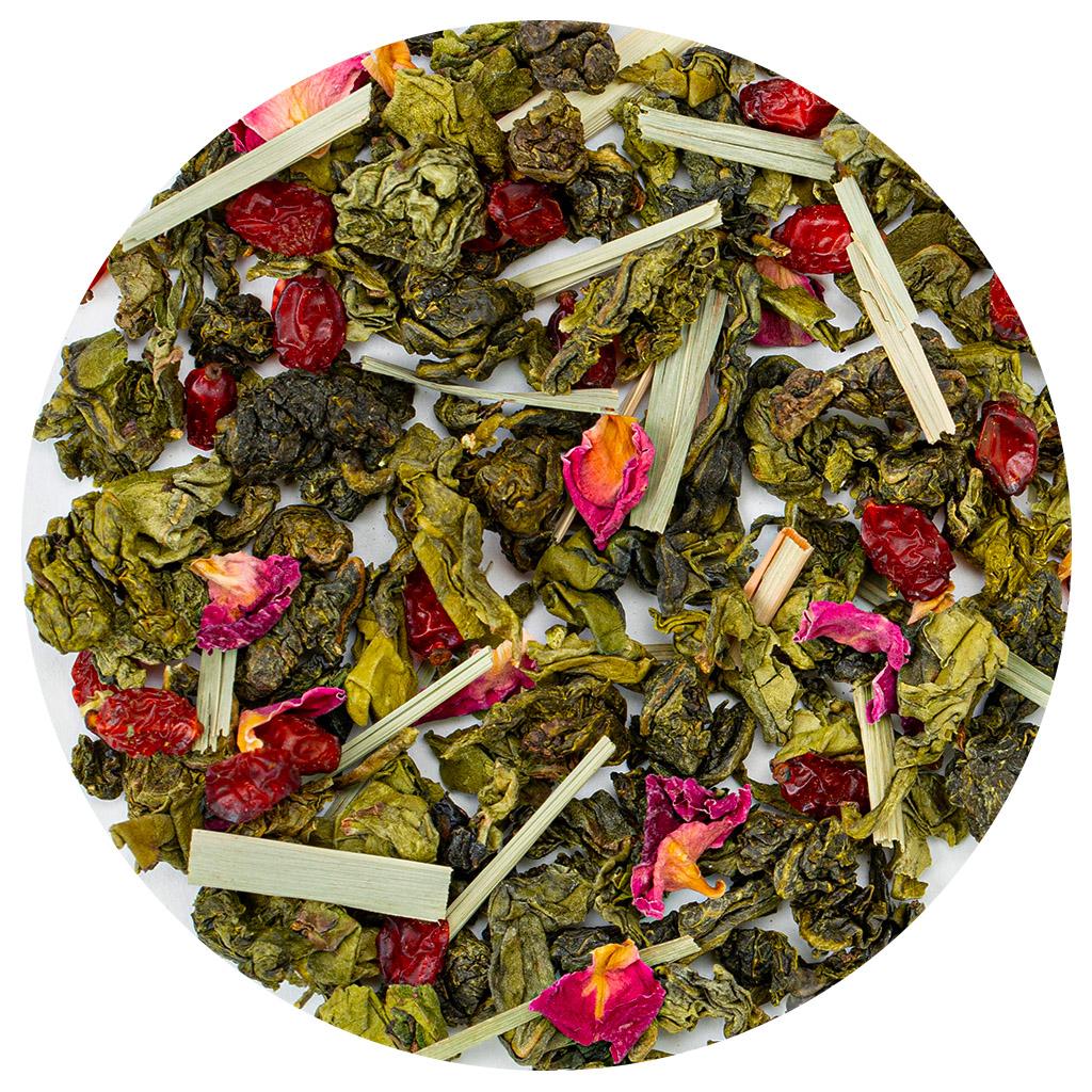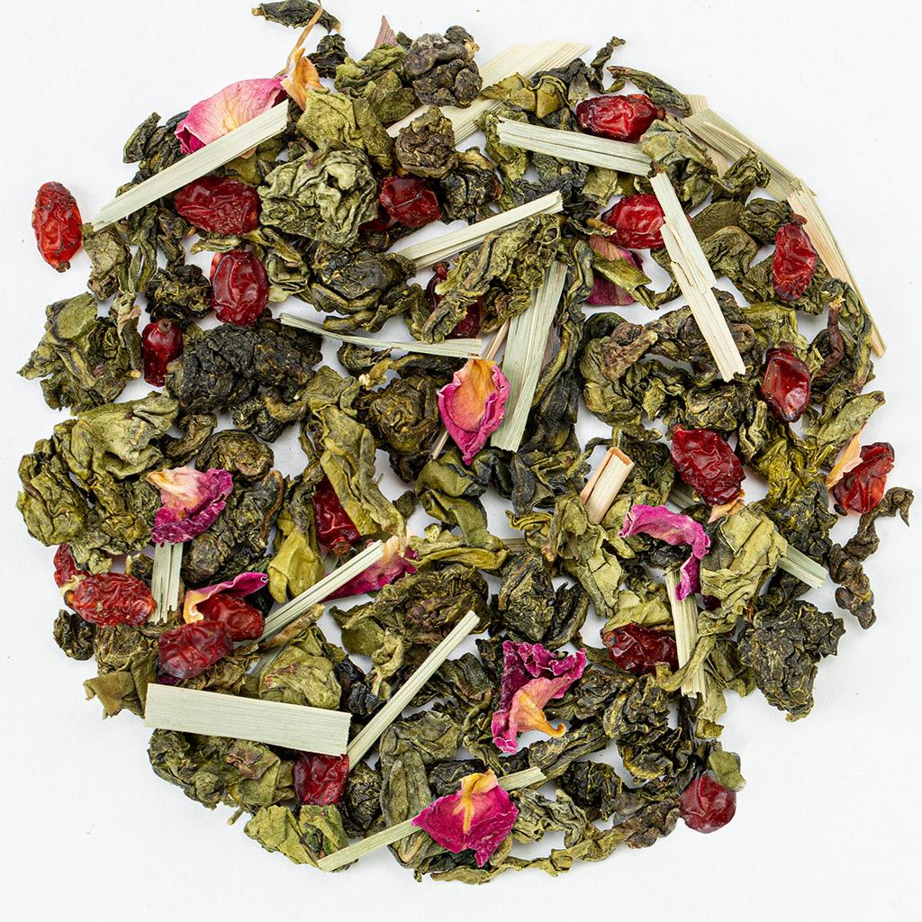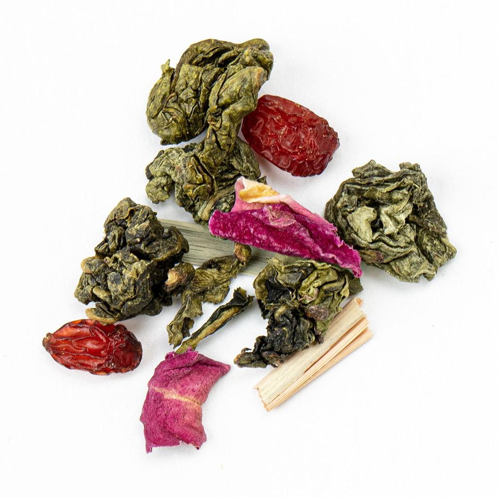 Чай Улун "Роза Ветров", словно мягкий ветер, который приносит дыхание далёких земель. В основе композиции — благородный китайский улун, нежный и утончённый, с лёгким орехово-цветочным послевкусием. Он становится идеальной канвой для яркого букета добавок.