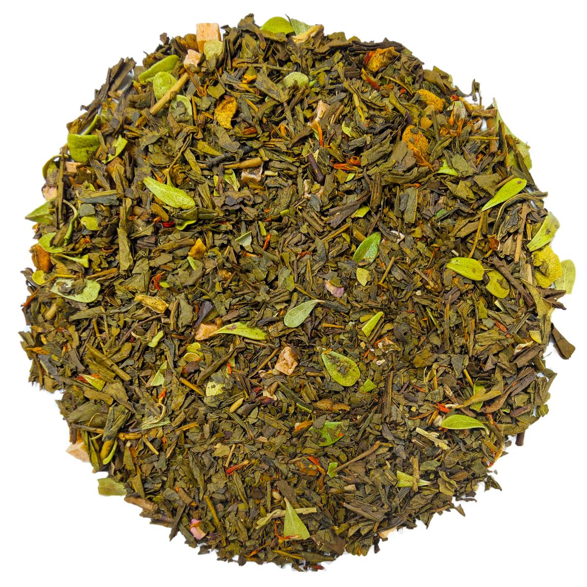 Зеленый чай на основе пороха (ганпаудера) с цедрой лимона и липой. Аромат изыска...