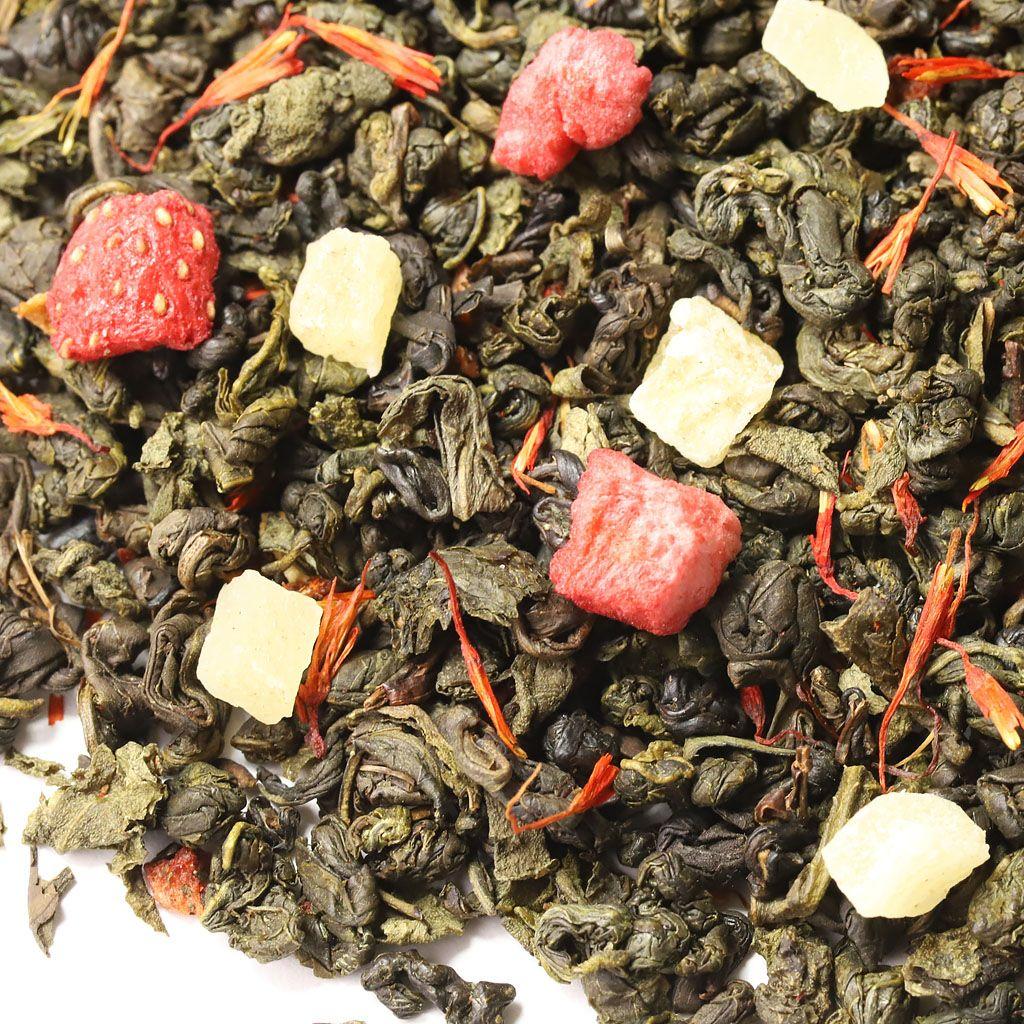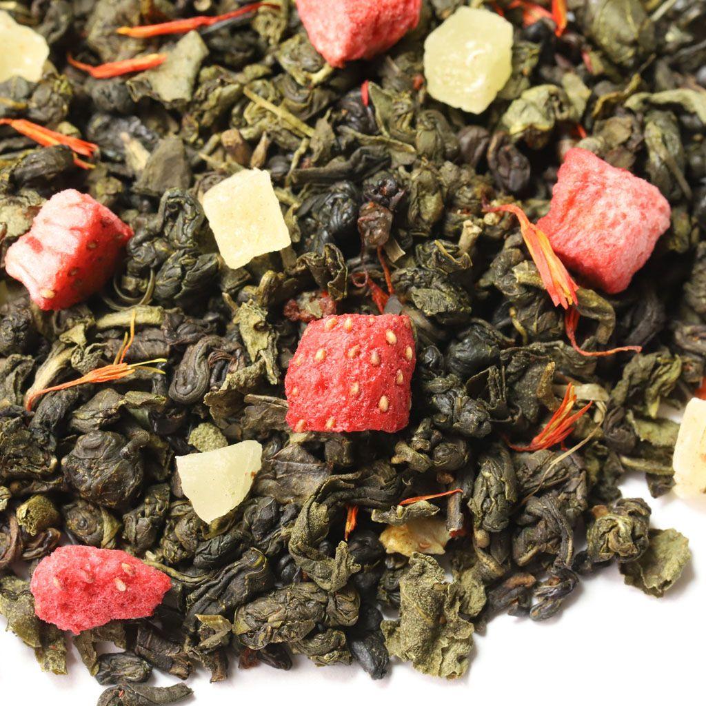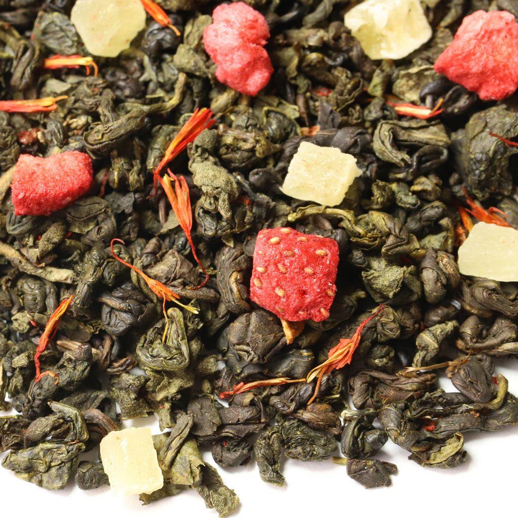 Чай зеленый китайский среднелистовой, целые ягоды малины, целые ягоды клубники, ...